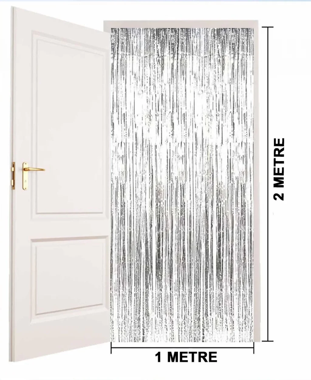 Gümüş Renk Ekstra Metalize Parlak Saçaklı Arka Fon Perde İthal A Kalite 1x2 Metre