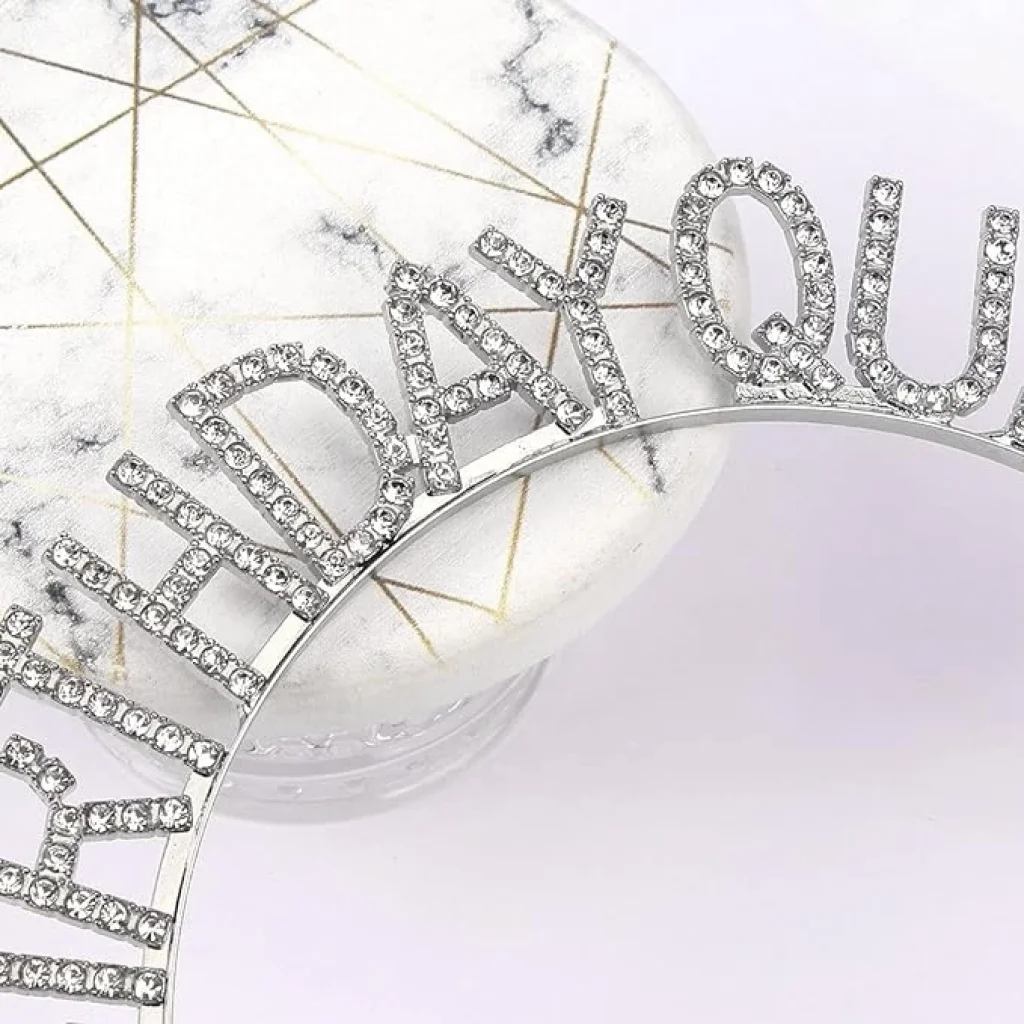 Gümüş Renk Kristal Taşlı Parlak Birthday Queen Yazılı Kraliçe Taç 16x17 Cm