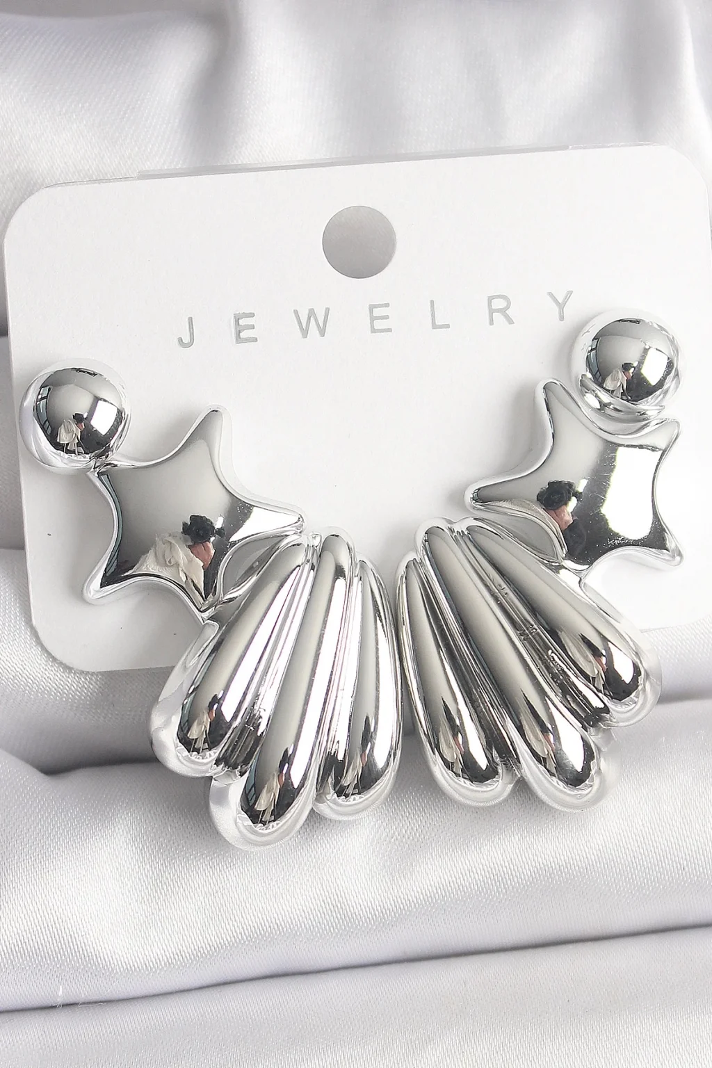 Gümüş Renk Yıldız Deniz Kabuğu Model CCB Plastik Kadın Küpe Seti
