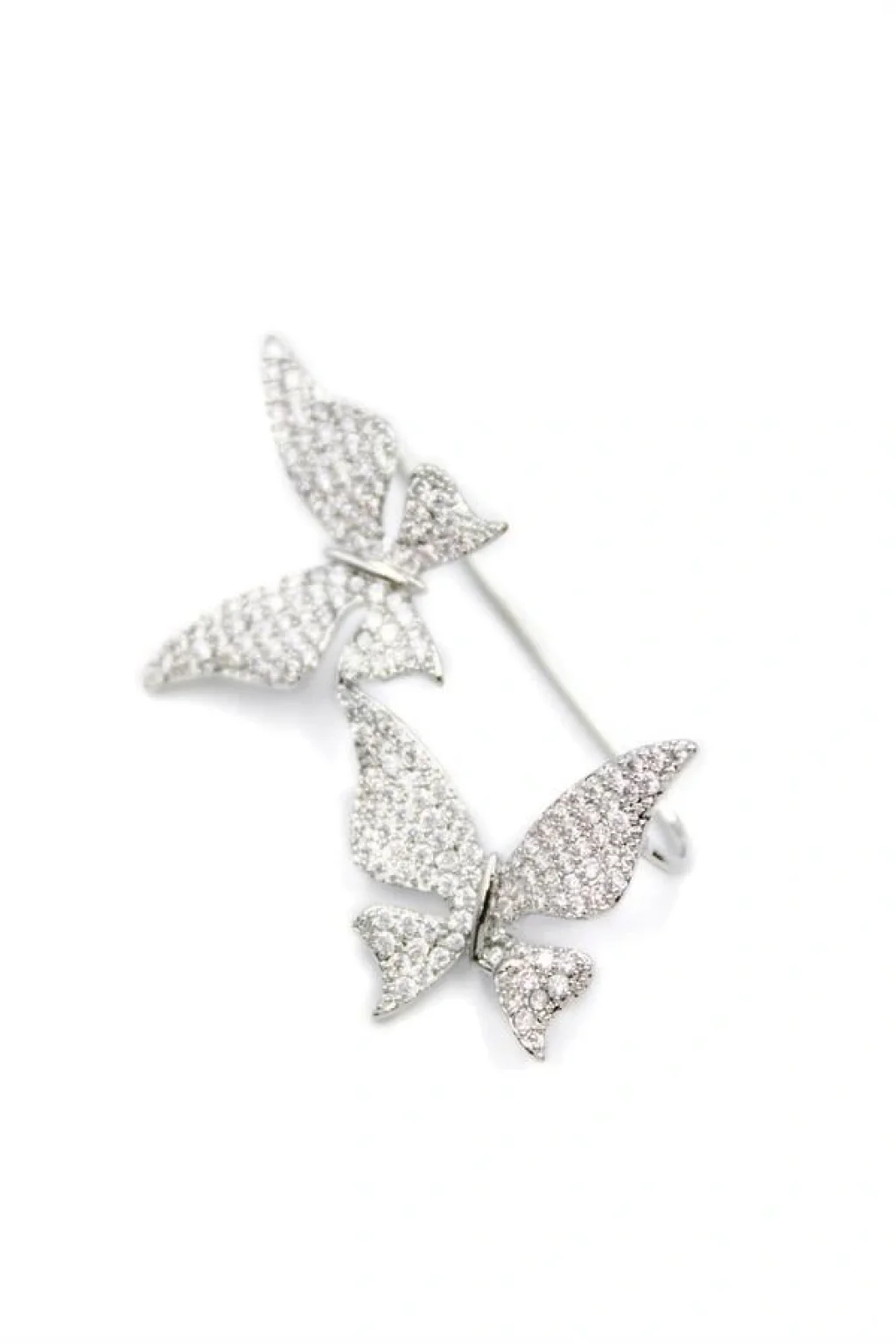 • İkili Kelebek Kıkırdak Küpe - Gümüş