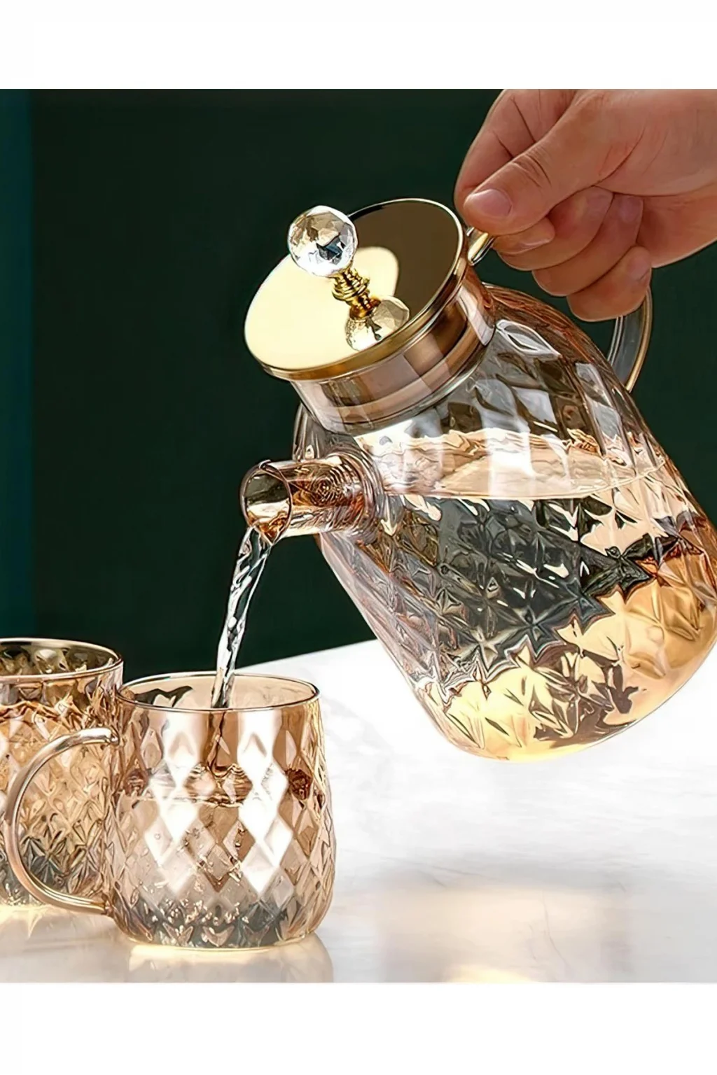 Paket İçeriği : 1 adet  Kabartmalı Bambu Kapaklı Borosilikat Cam Demlik 1500ml Royaleks-CM-2005