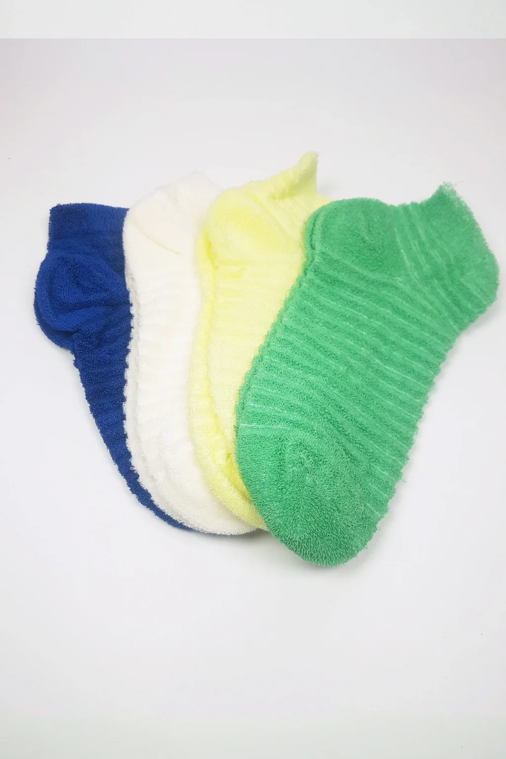 | Kadın Havlu Patik Bilek Çorap Ev Çorabı 4 Çift Yüksek Pamuk oranı sayesinde ter emici ve nefes alan yapıya sahiptir. Yumuşak dokusu ile ayak konforunuzu sağlar. Kadın bilek çorap kadın iç giyim ürünlerinde en çok tercih edilen çorap modelidir. Yüksek kalite kullanılarak üretilmiştir. 36-41 numaraya kadar uyumludur esnek çoraptır. Paket İçeriği 4 adet çeşitli renklerde gönderilmektedir. Renkler farklılık gösterebilir. |