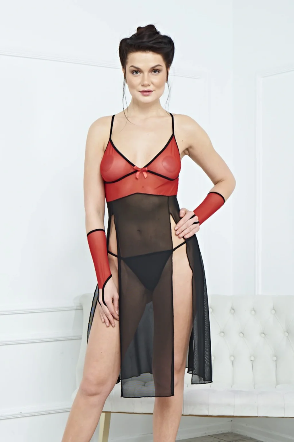Kadın Şık Fantezi Uzun Elbise Gecelik Harness 3864 - Royaleks