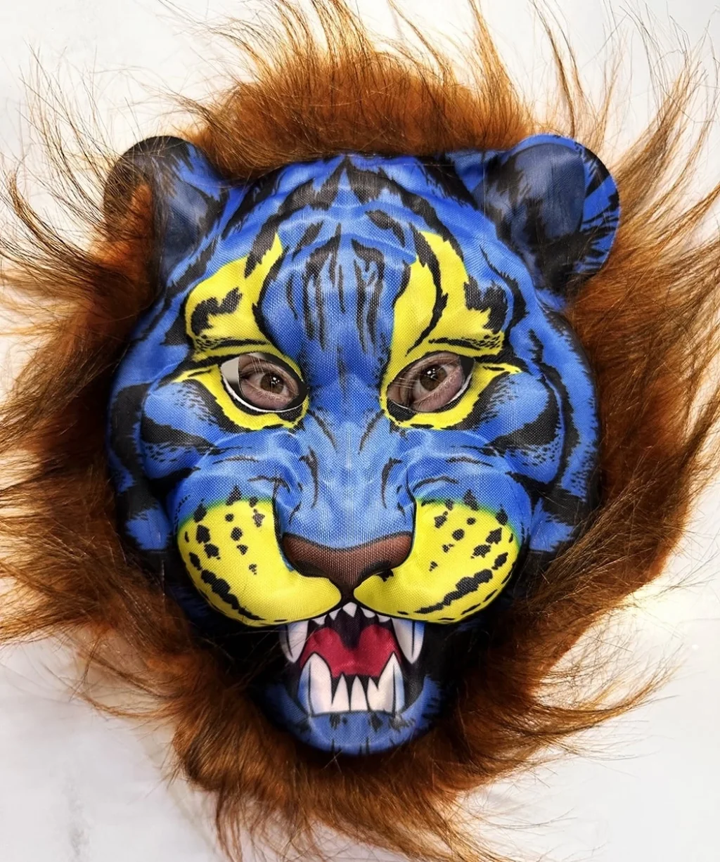 Kahverengi Yeleli Saçlı Mavi Yüzlü Kurt Kaplan Maskesi Mega Peluş 38 No