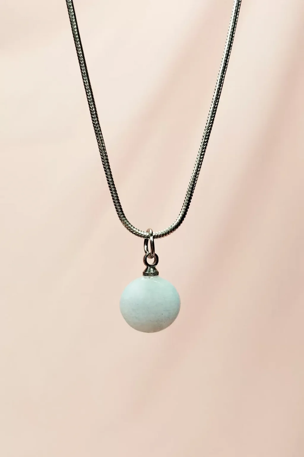 Kalsedon Doğal Taşı Zincirli El Yapımı Kolye Uç: 1,5 cm Zincir: 20 cm Kutulu