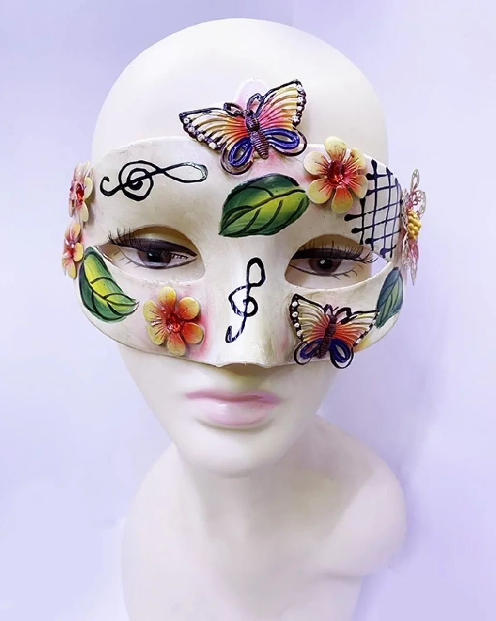 Kelebek Ve Çiçek İşlemeli Venedik Maskesi Kırmızı Renk 10x18 Cm
