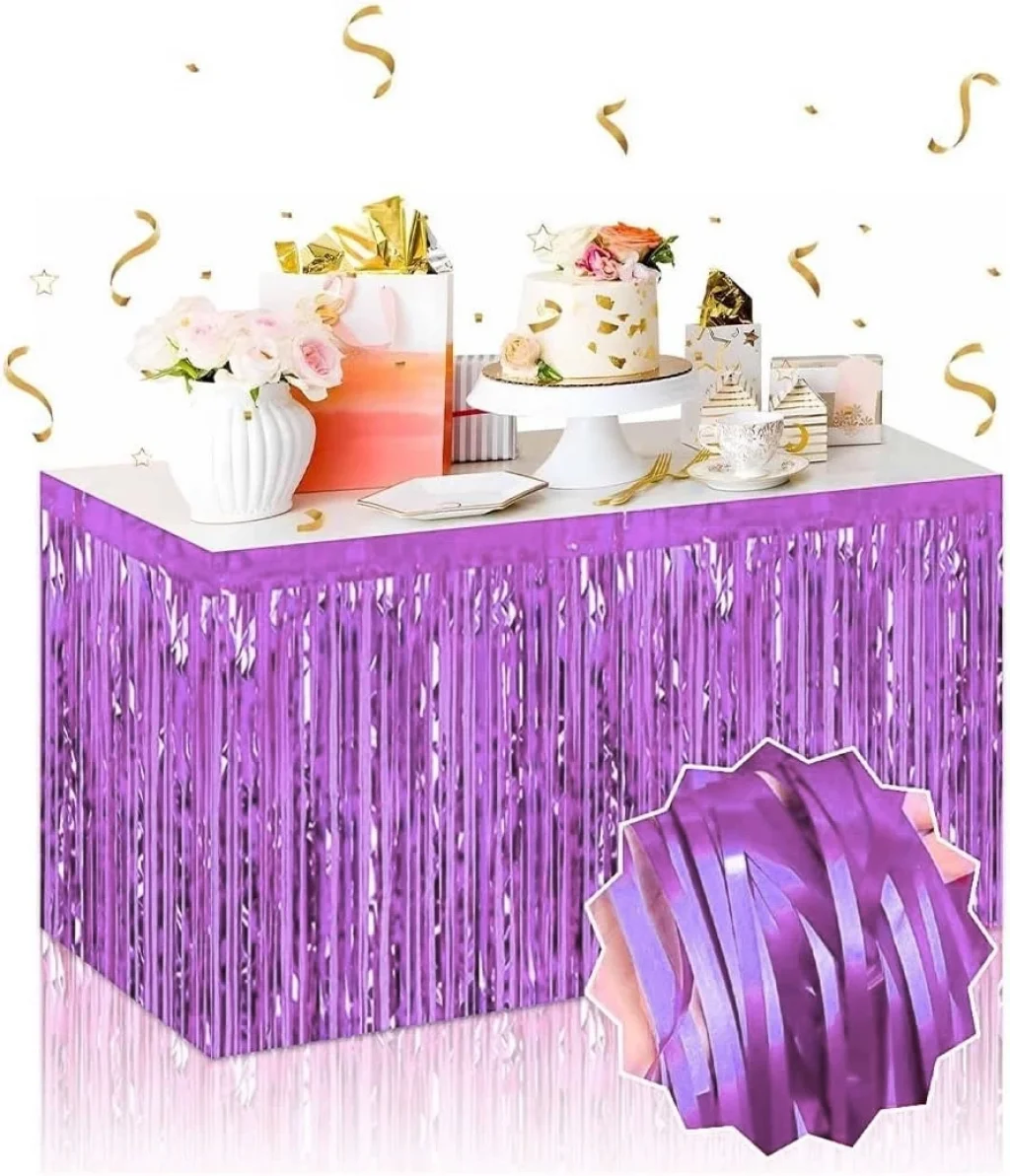Kendinden Yapışkanlı Mor Metalize Püsküllü Masa Eteği – 75 X 275 Cm Parti Süslemesi
