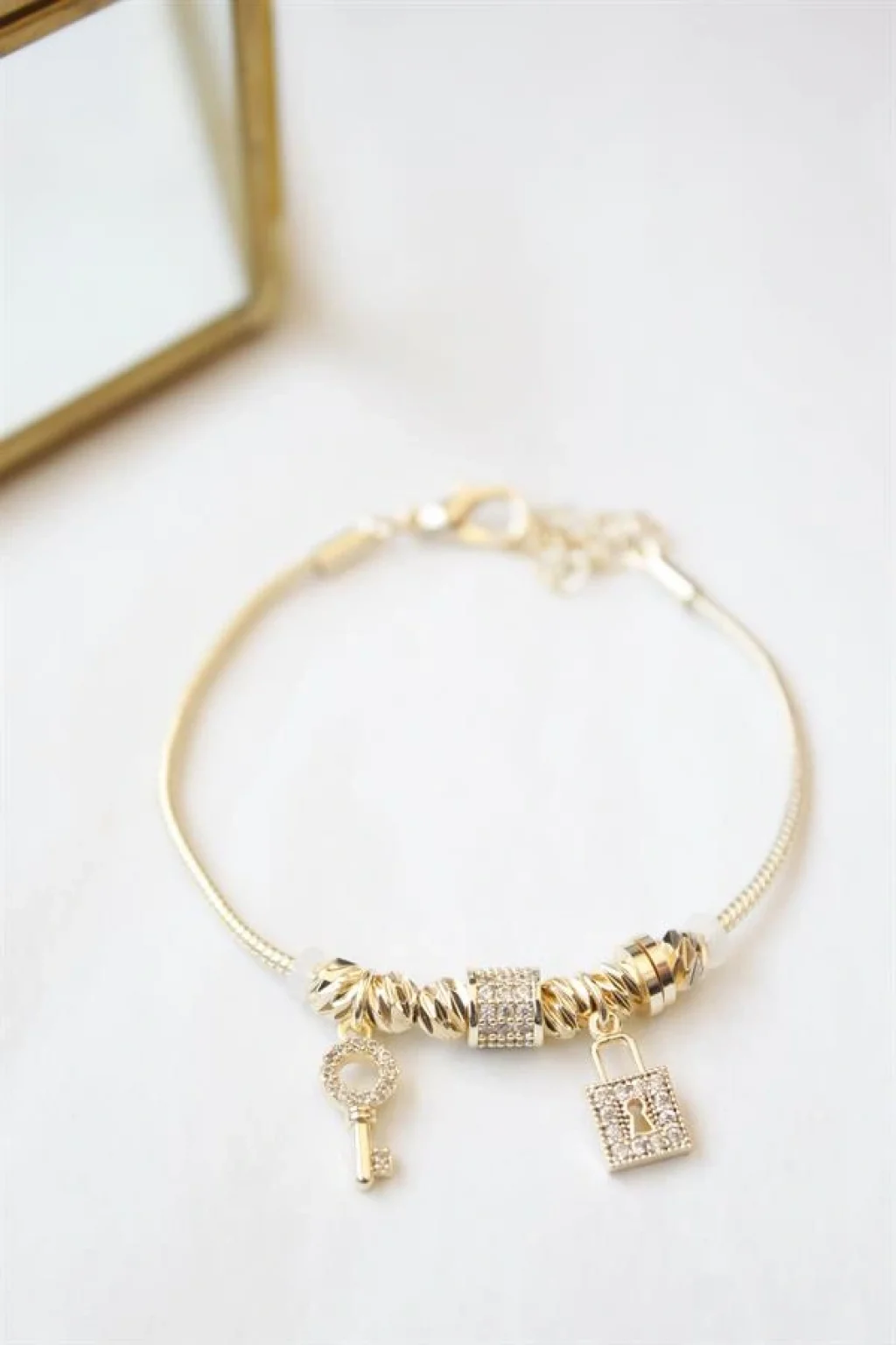 • Kilit Anahtar Charmlı Bileklik - Altın