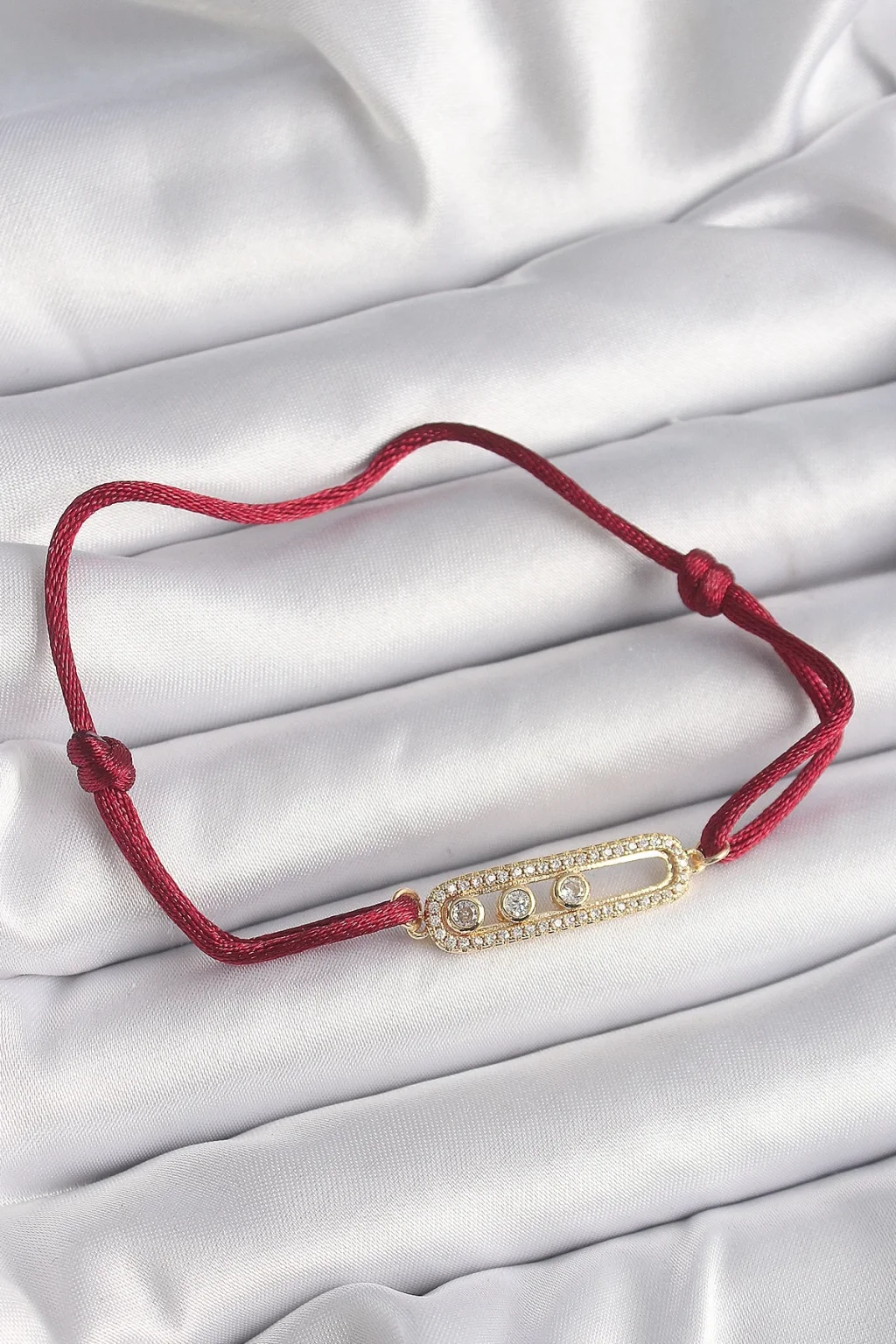 Kırmızı İpli Asansörlü Zirkon Taşlı Gold Messika Model Kadın Bileklik