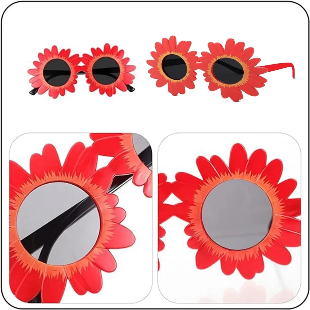 Kırmızı Renk Papatya Şekilli Parti Gözlüğü 18x10 Cm