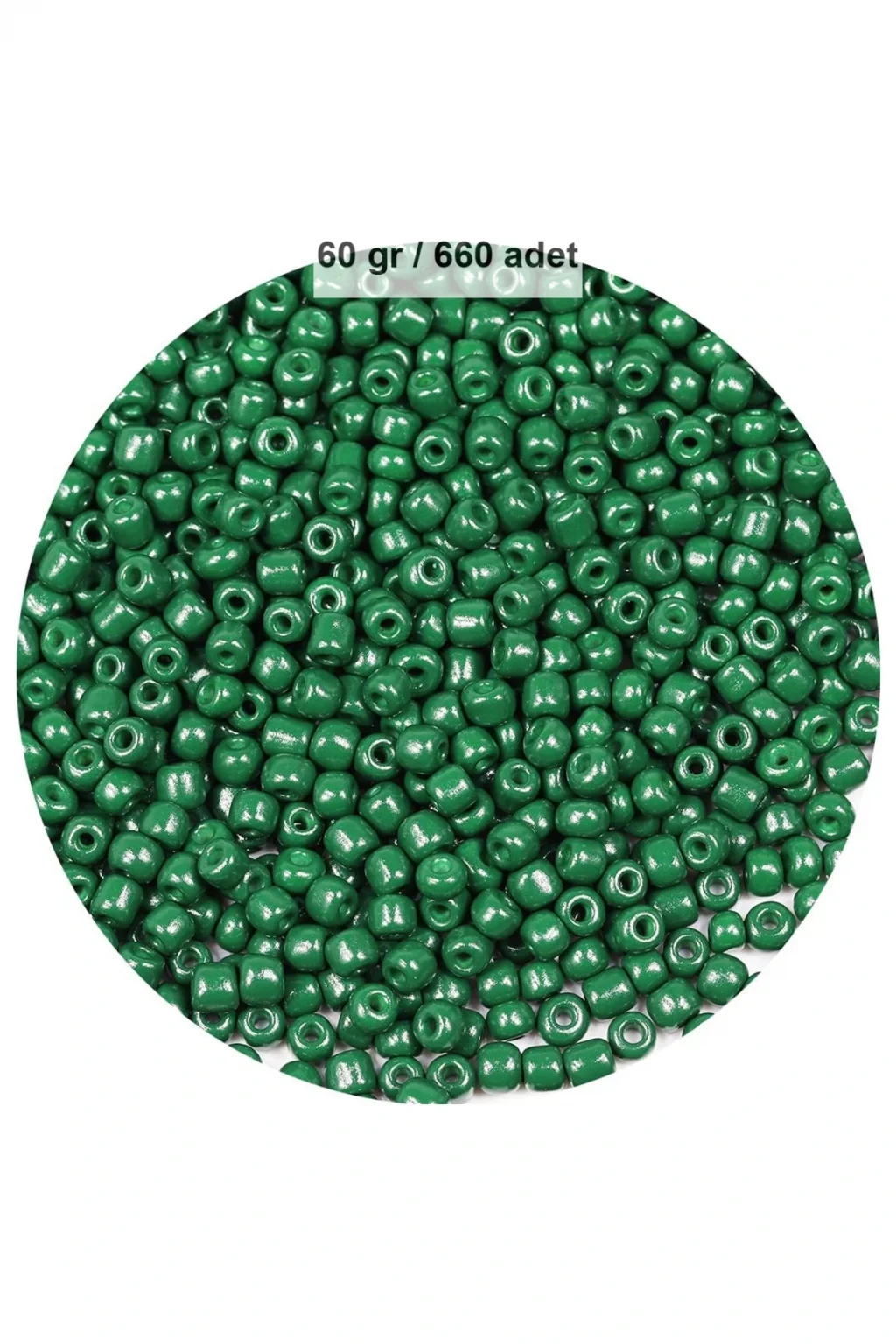 • Koyu Yeşil Renk 4 mm Yaklaşık 660 adet / 60 gram Cam Boncuk Oya Yazma Bileklik ve Kolye
