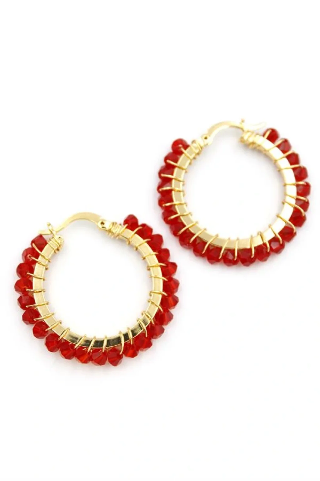 • Kristal Boncuk Halka Küpe - Kırmızı