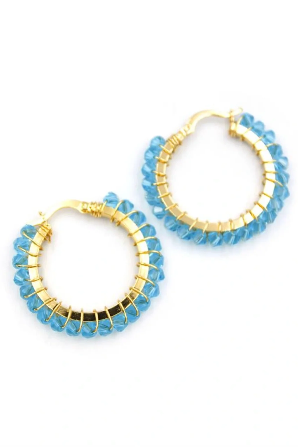 • Kristal Boncuk Halka Küpe - Turkuaz