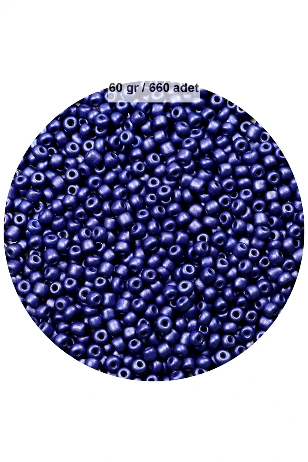 • Lacivert Renk 4 mm Yaklaşık 660 adet / 60 gram Cam Boncuk Oya Yazma Bileklik ve Kolye