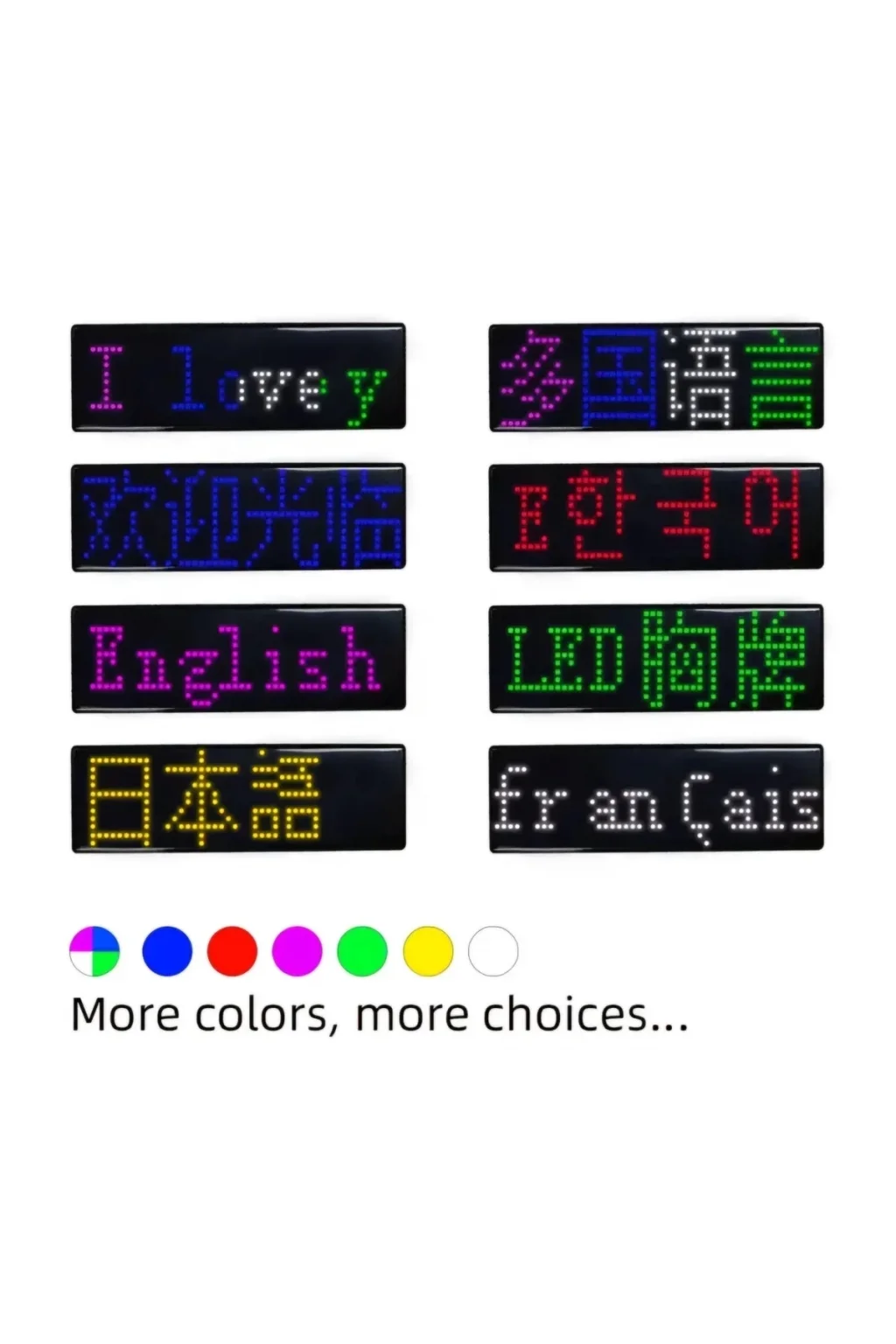 Matrix Kayan Led Yaka Rozeti Mobil Kontrollü Dijital Etiket 9×3cm