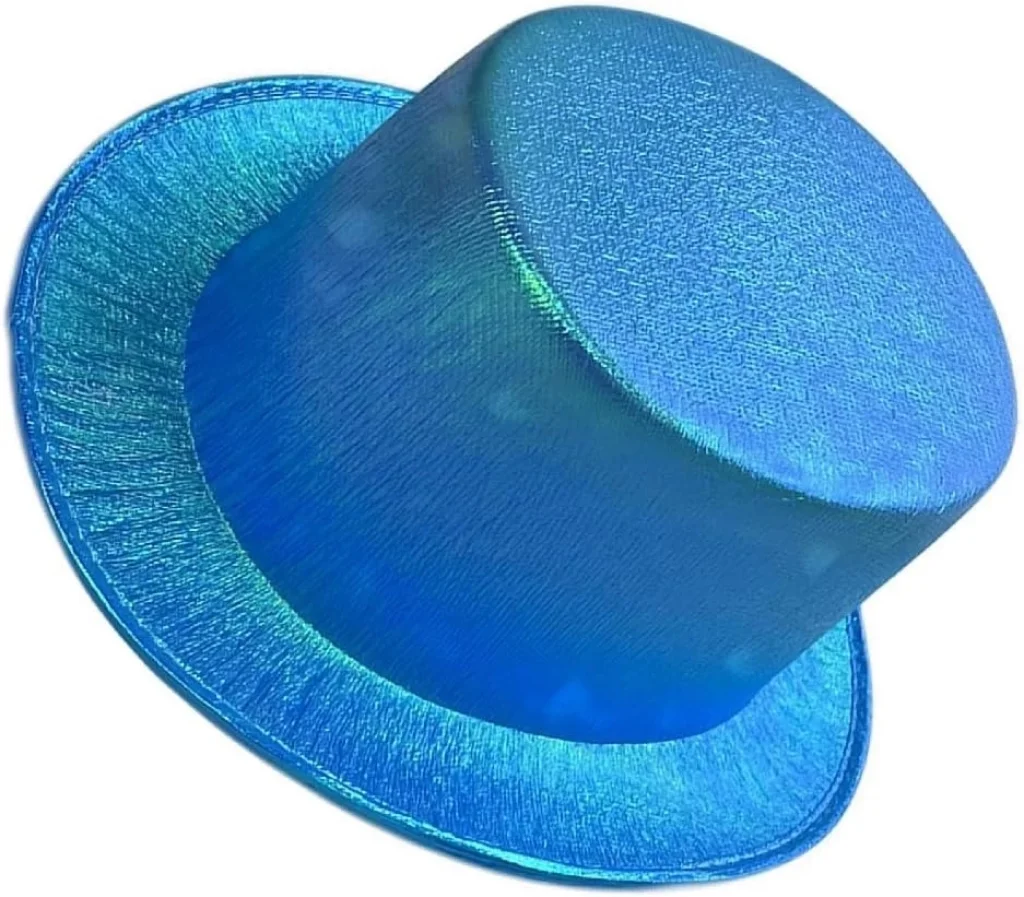 Mavi Renk Işıltılı Hologram Kumaş Kaplama Fötr Silindir Şapka Yetişkin Boy