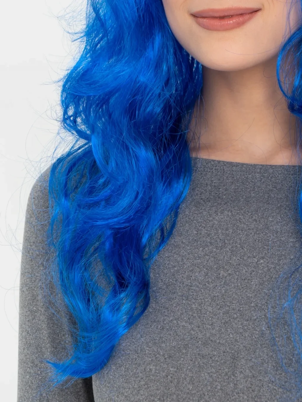 Mavi Renk Uzun Dalgalı Parti Peruğu
