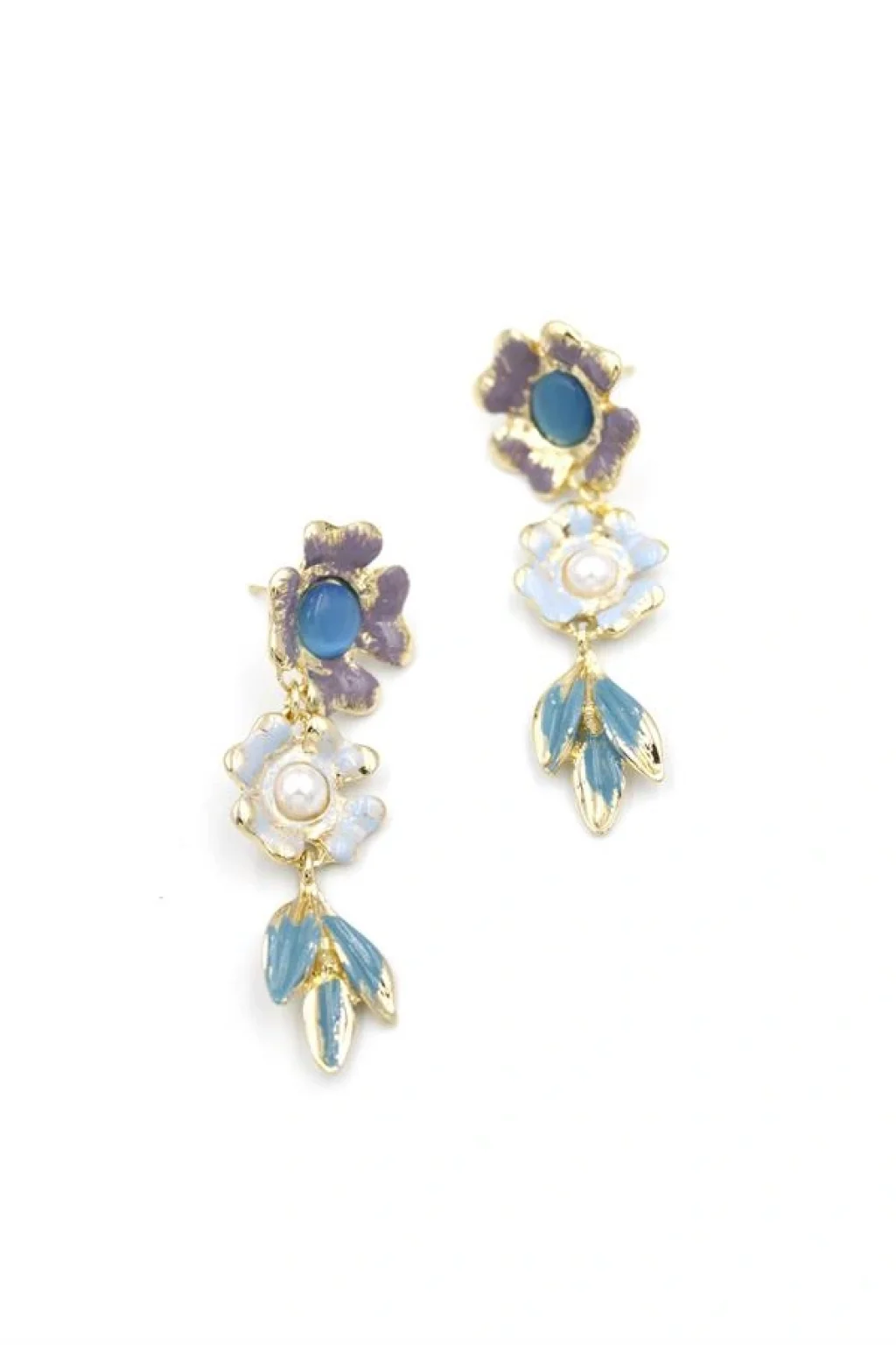 • Metal Çiçek Küpe - Turkuaz