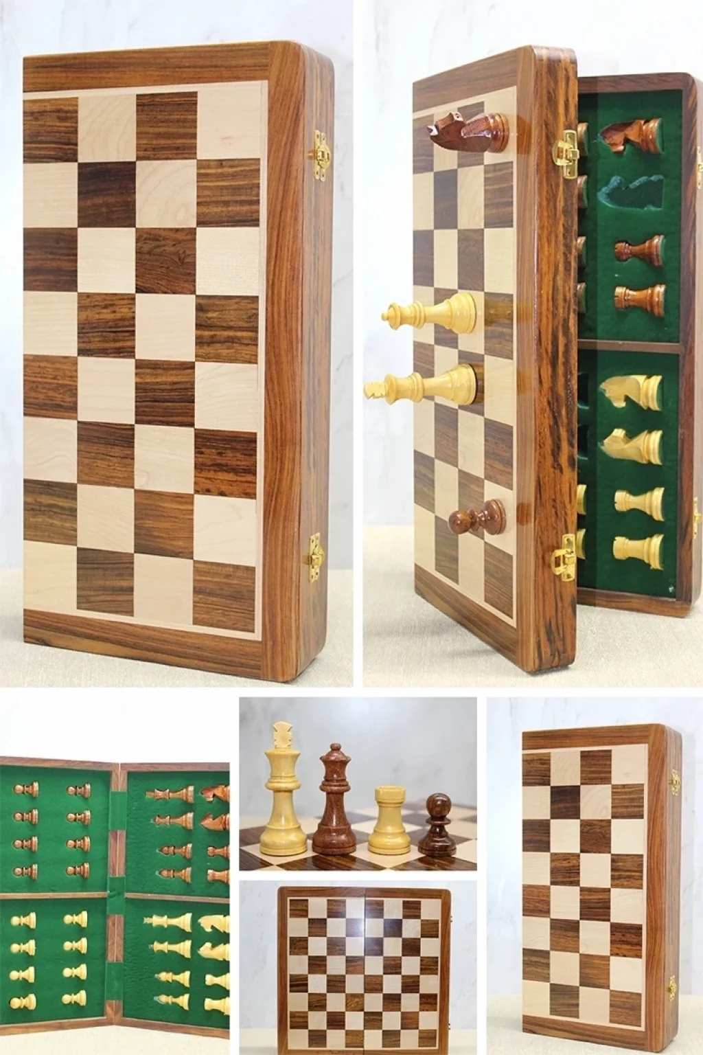 Mıknatıs Taşlı Ahşap Katlanabilir Kutulu Satranç Oyunu 40 Cm G225