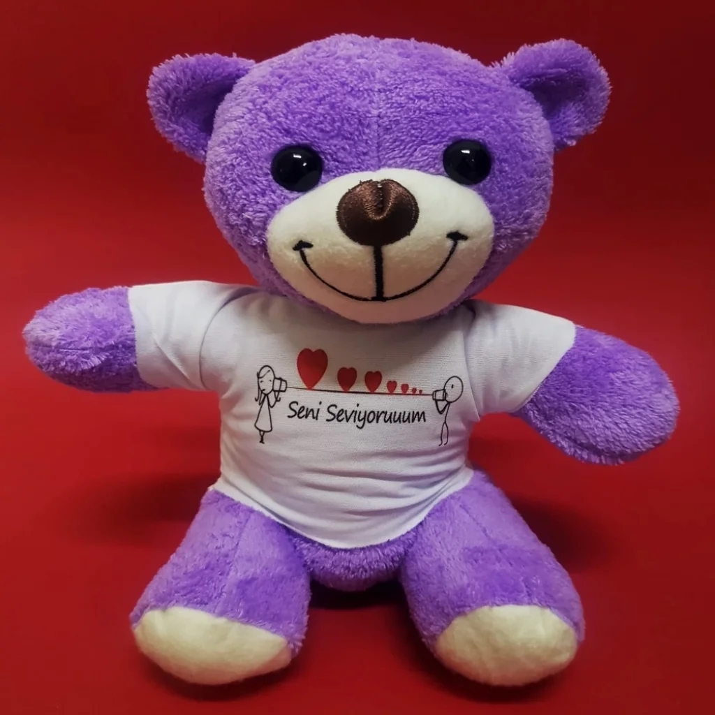 Mor Ayıcık Seni Seviyorum Baskılı Tişörtlü
