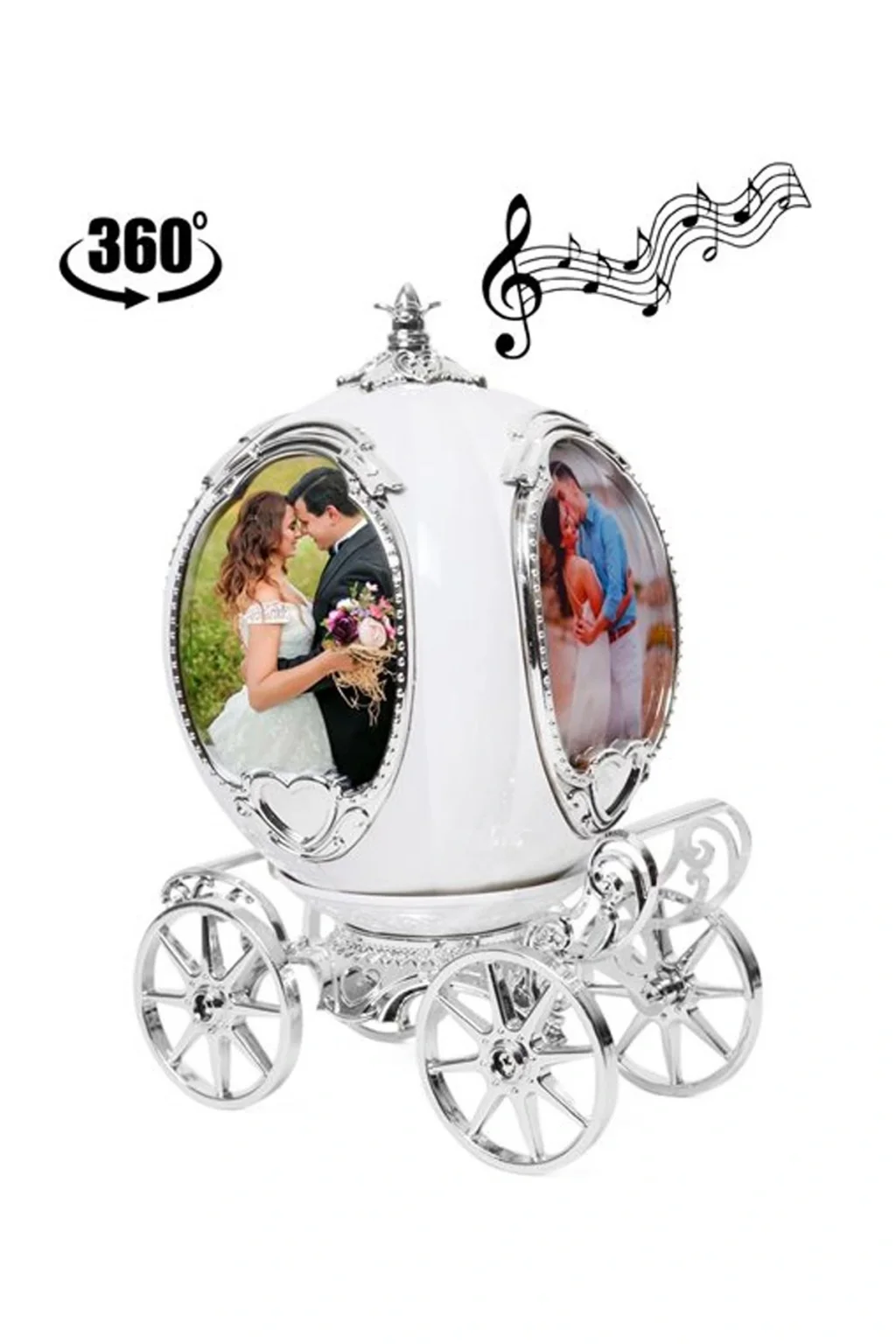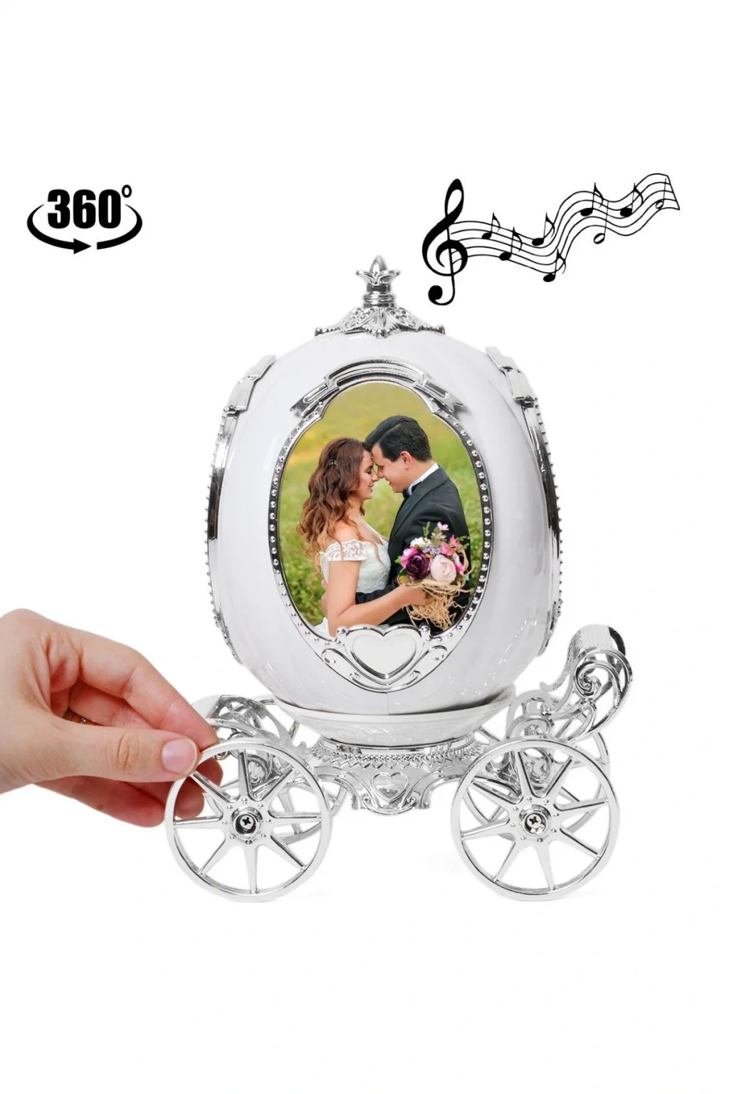 | Hafif kurma hareketiyle kendiliğinden dönmeye başlayıp rahatlatıcı müziğiyle dikkat çekici dekoratif bir hediye haline geliyor. Ürün ebatı: Çap 45 cm, Boy 25 cm, Derinlik 17 cm Malzemesi kaliteli plastiktir. Kurmalı müziklidir. Fotoğraf Sayısı 4 adet Fotoğraf ebatı 7.5 cm x 9.5 cm Beyaz renktedir. |