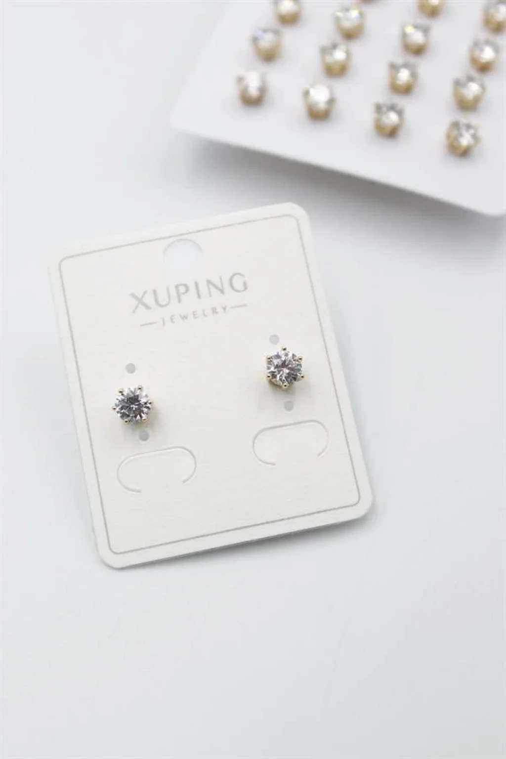 Orta Boy Zirkon Taşlı Tektaş Küpe - Altın