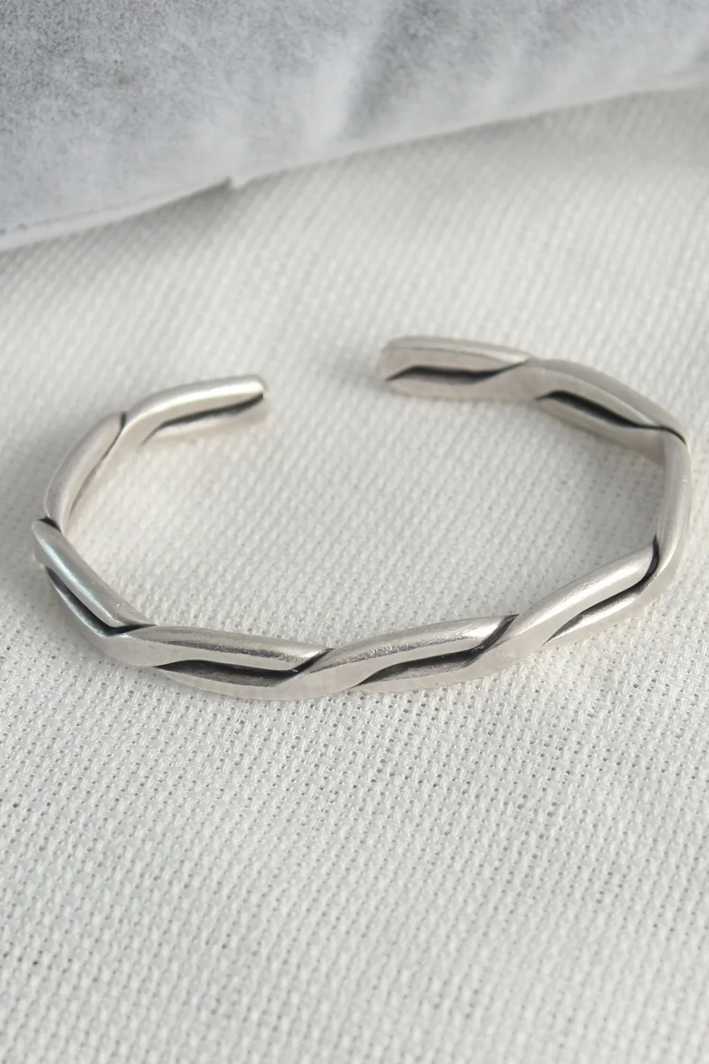 Otantik Gümüş Renk Motif İşleme Plaka Erkek Bileklik
