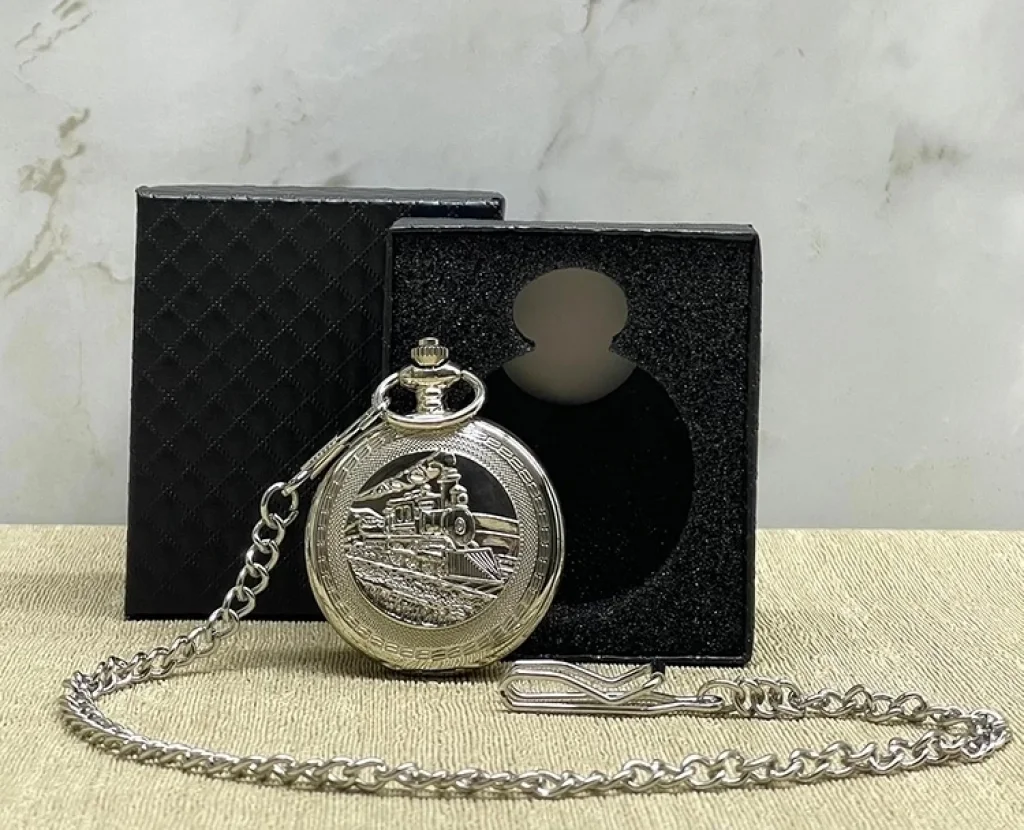 Özel Kutulu Tren Temali Gümüş Köstekli Saat Alk4675