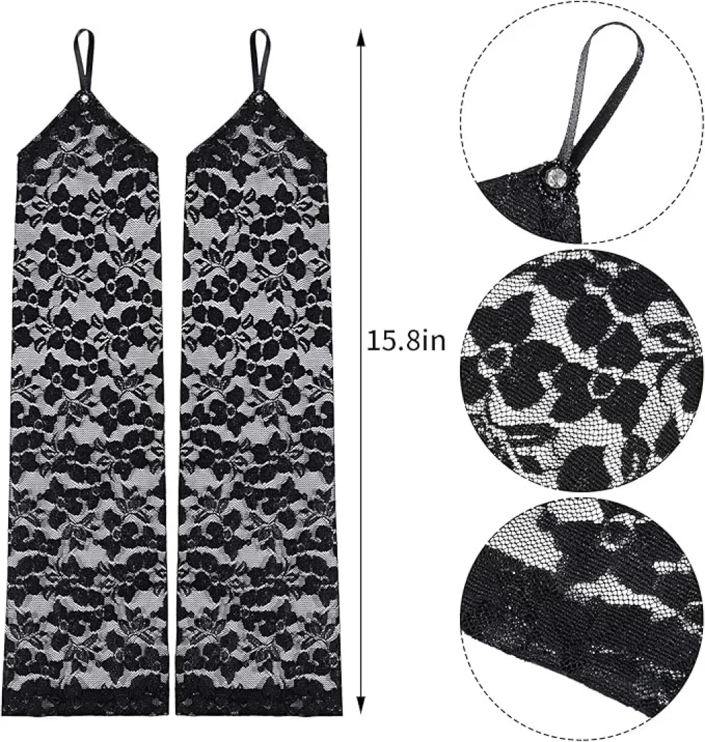 Parmak Askılı Zarif Gece Şıklığı Dantel Eldiven 40 Cm