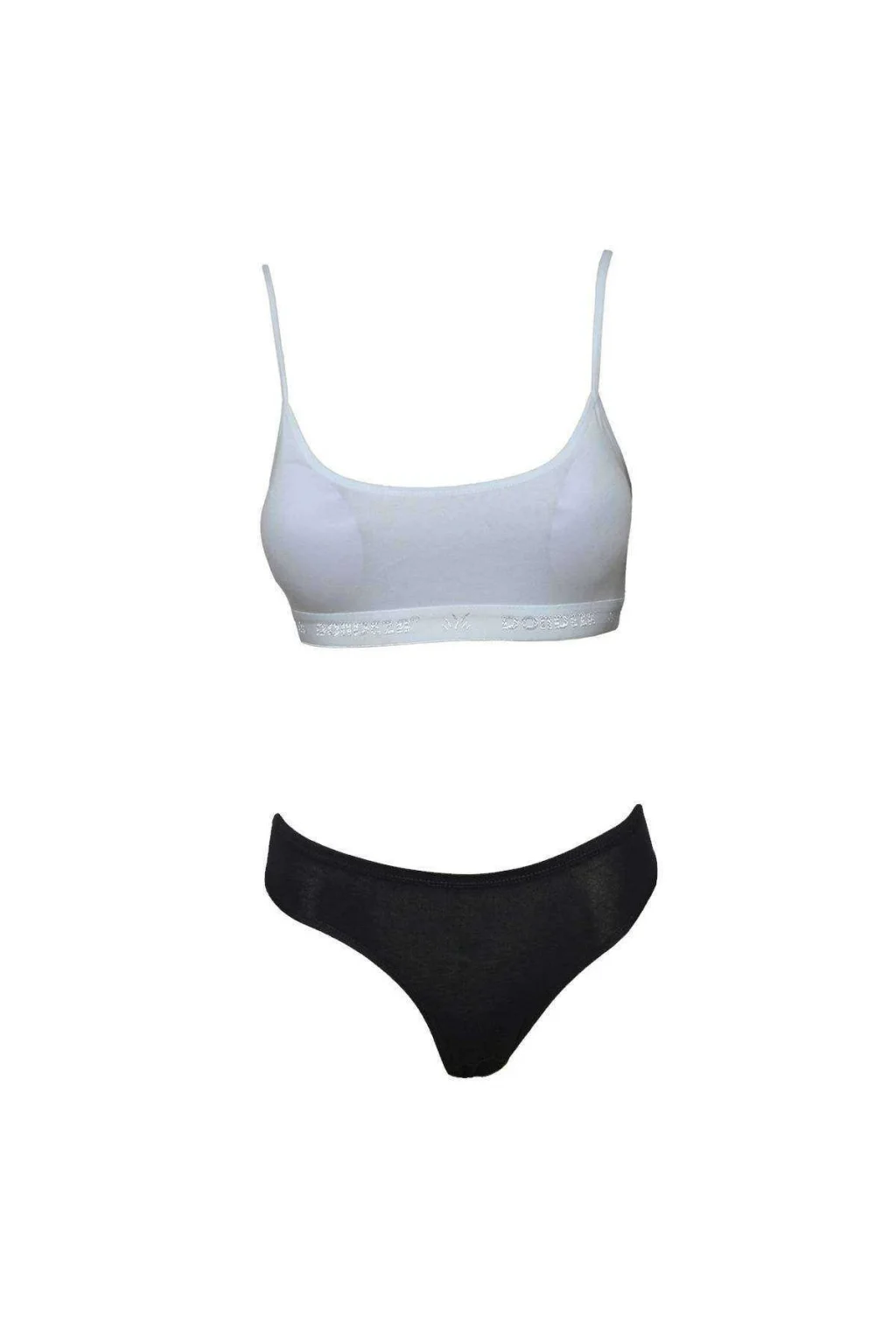| Kadınlar gündelik yaşamda vücut sağlığını göz önünde bulundurarak rahat hareket edebilecekleri, teri engelleyici iç giyim ürünleri tercih etmelidirler. Bunun için de en doğru adrestesiniz. Ürünlerimizin kaliteli dokusu, renk, beden ve baskı çeşitliliğinin kattığı renklilikle en çok tercih edilen iç giyim markaları arasında yer almaktayız. İçerik: %93 Pamuk %7 Elastan Beden Tablosu; S-M= 40-46 L-XL= 48-54 PAKET İÇERİĞİ; 1 ADET BEYAZ PEDLİ BÜSTİYER 1 ADET SİYAH LİKRALI SLİP KÜLOT |