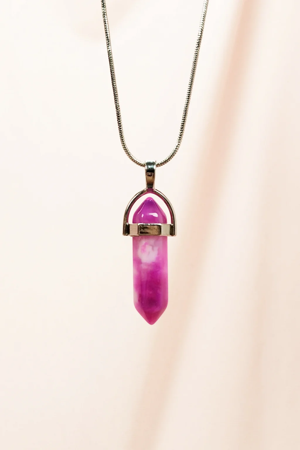| Pembe Akit Doğal Taşı Zincirli El Yapımı Tasarımlı Kolye Uç: 3,5 cm Zincir: 20 cm Kutulu |