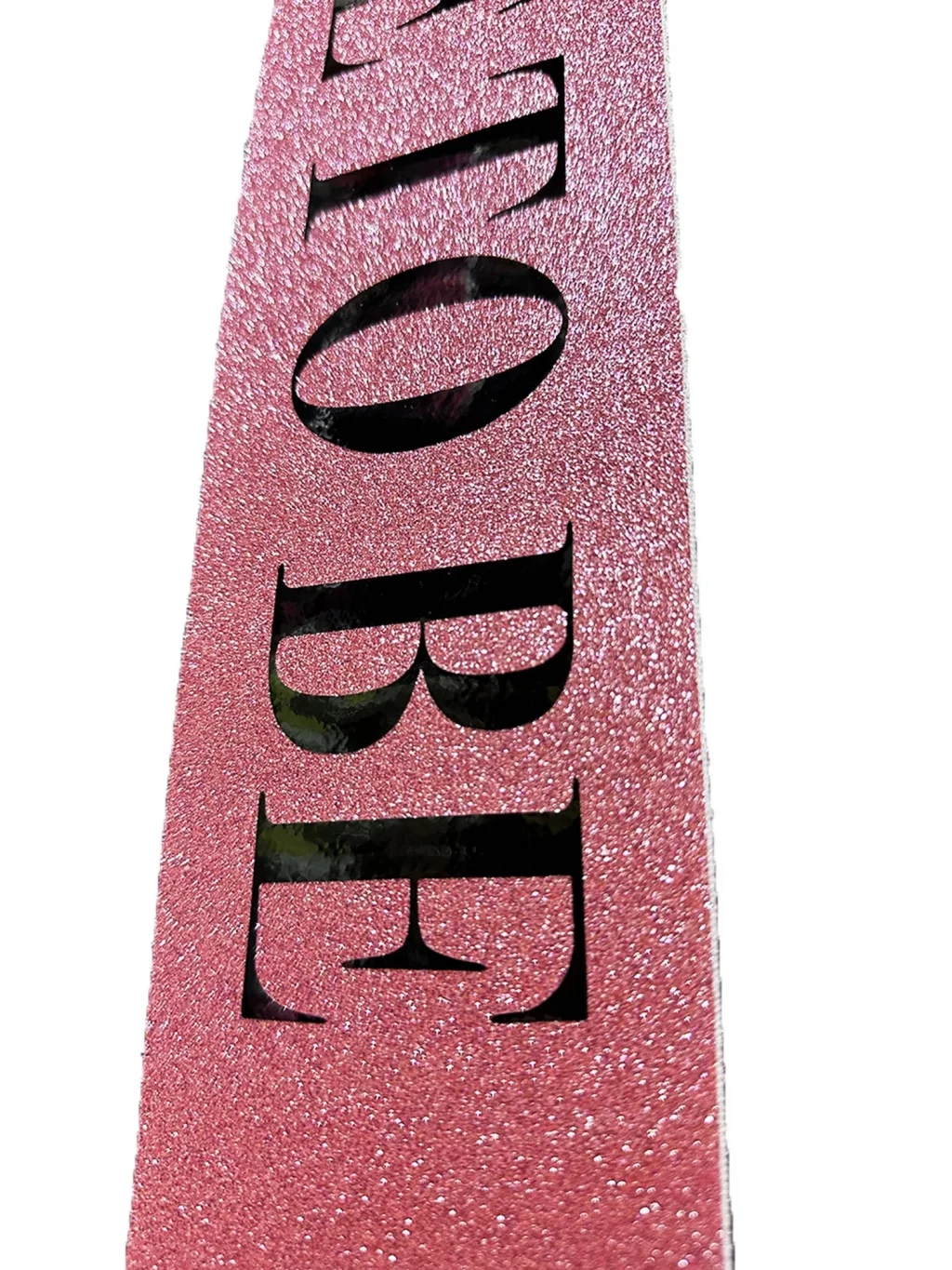 Pembe Üzeri Siyah Büyük Bride To Be Yazılı Simli Işıltılı Kuşak Kemer 10 Cm Genişlik