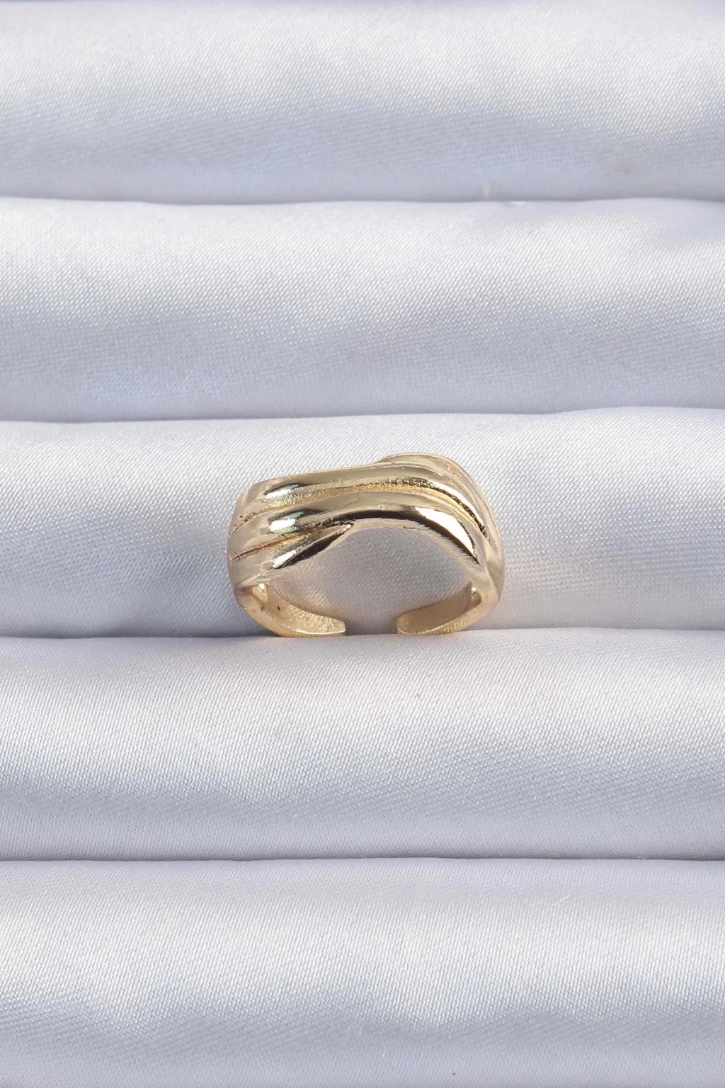 Pirinç Altın Renk Kıvrımlı Ayarlanabilir Yüzük