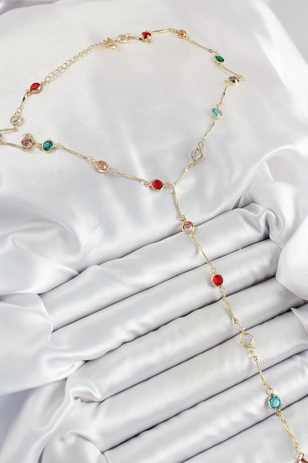 Pirinç Asorti Model Gold Renk Zirkon Taşlı Y Kolye