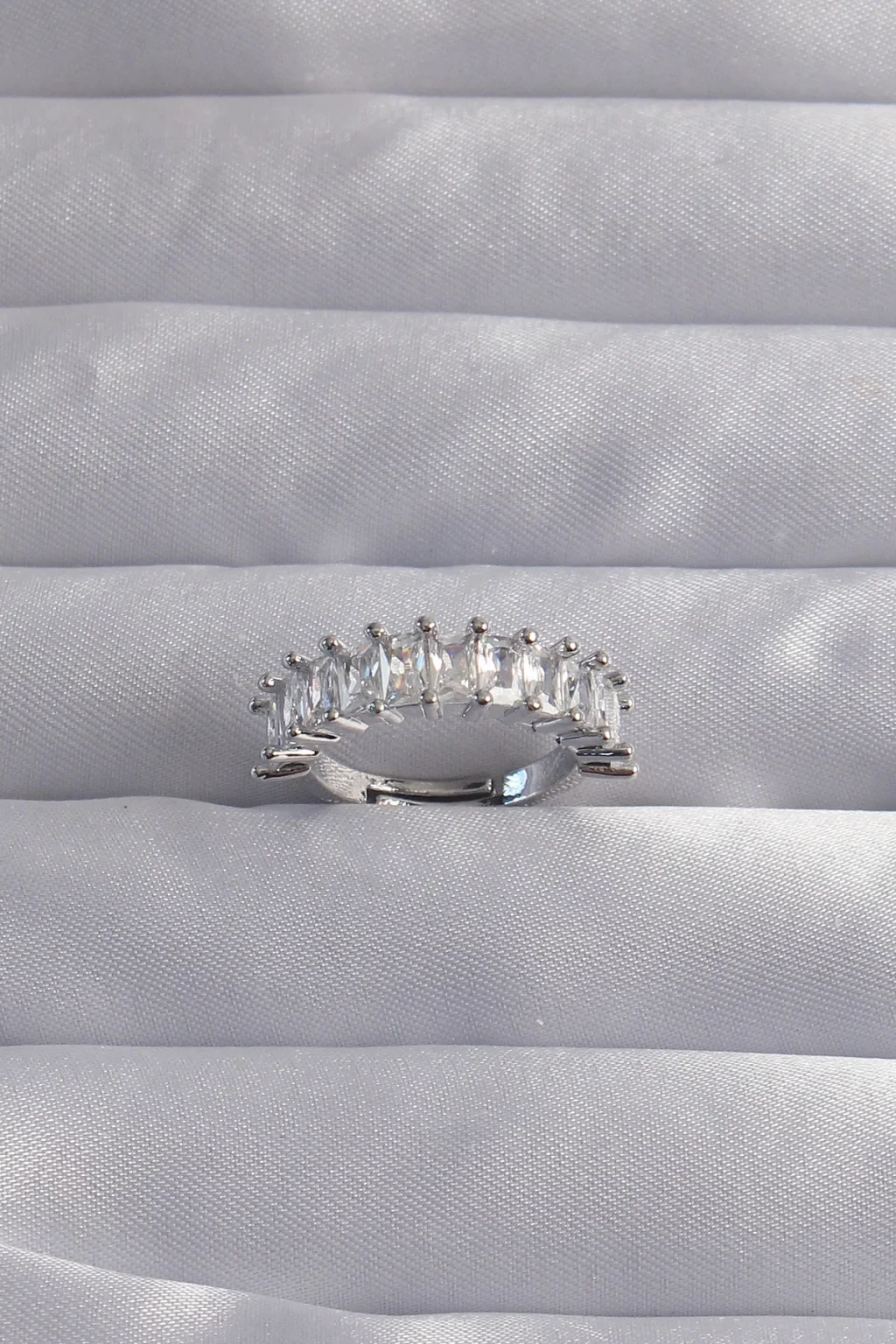 Pirinç Ayarlamalı Gümüş Renk Baget Taşlı Su Yolu Yüzük