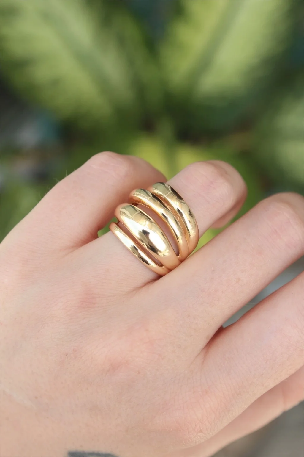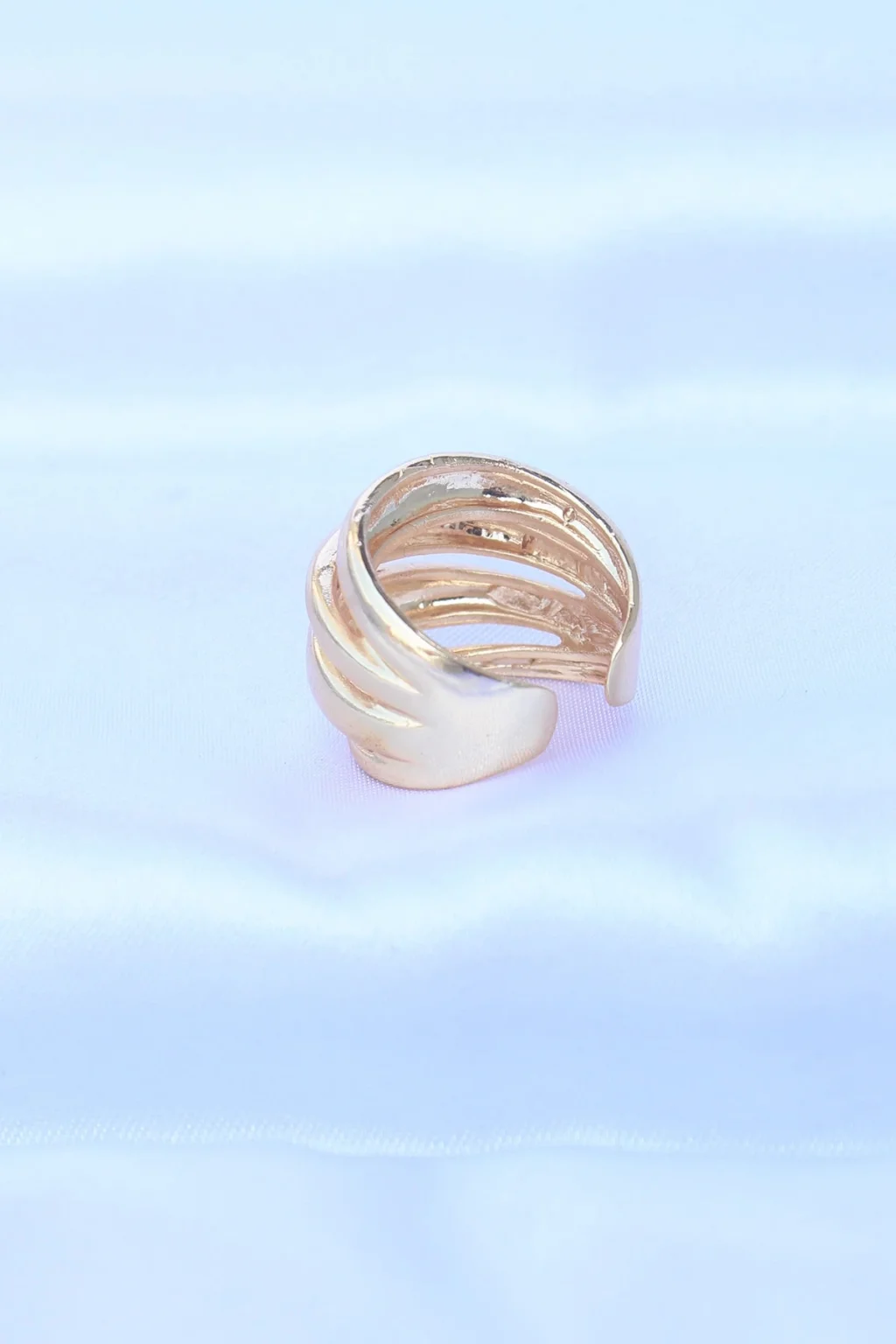 Pirinç Gold Renk Ayarlanabilir Tırtıklı Bombe Yüzük