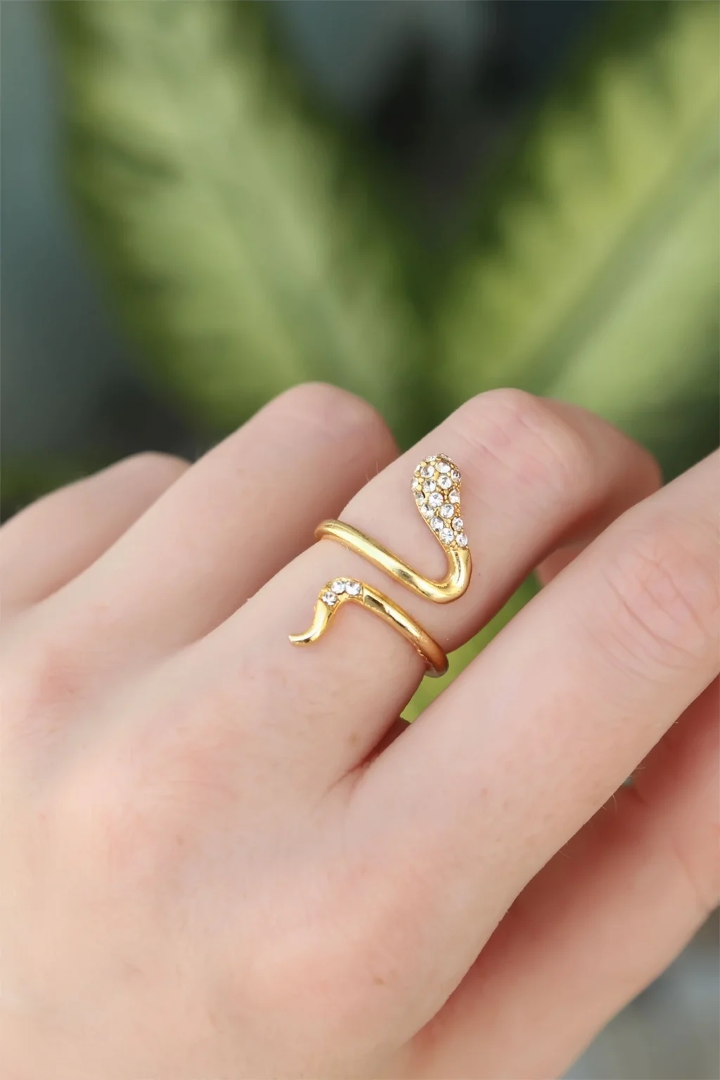 Pirinç Gold Renk Ayarlanabilir Zirkon Taşlı Yılan Yüzük