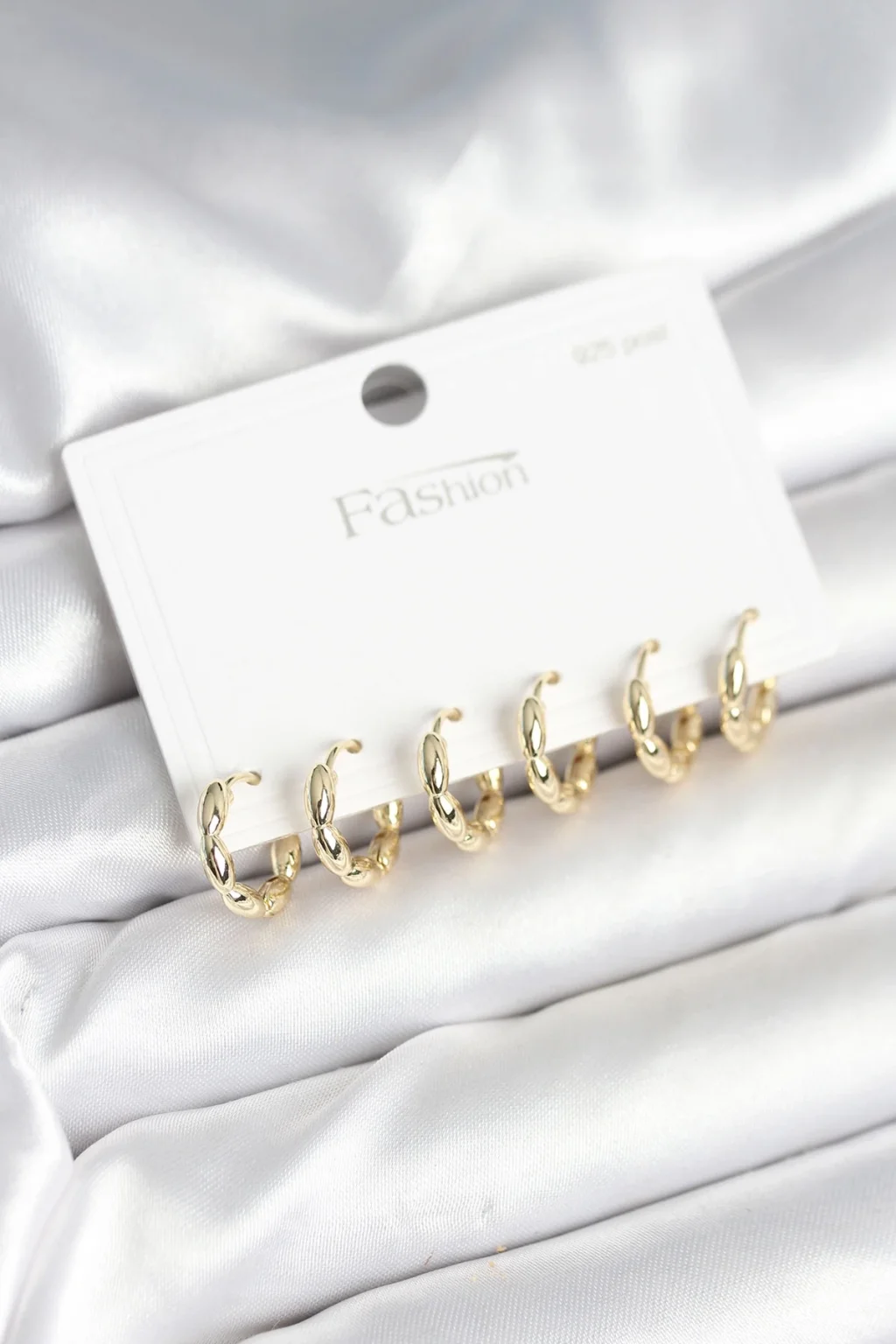 Pirinç Gold Renk Baklalı Halka 925 Gümüş Çivi Kadın Küpe Seti