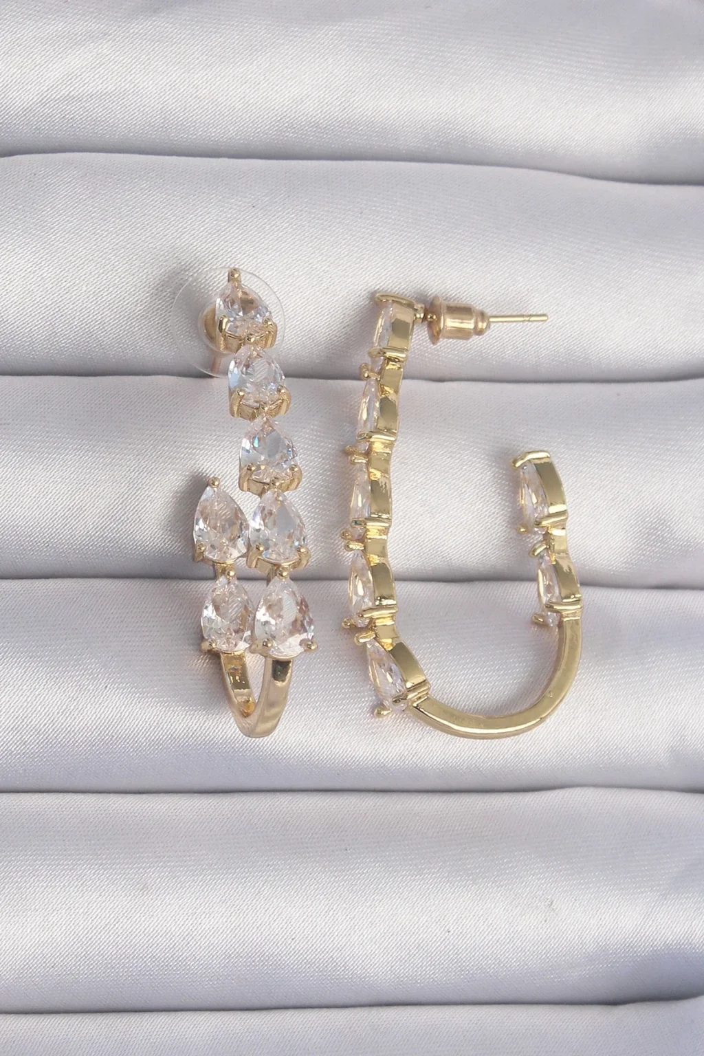 Pirinç Gold Renk Damla Zirkon Taş Tasarımlı Küpe