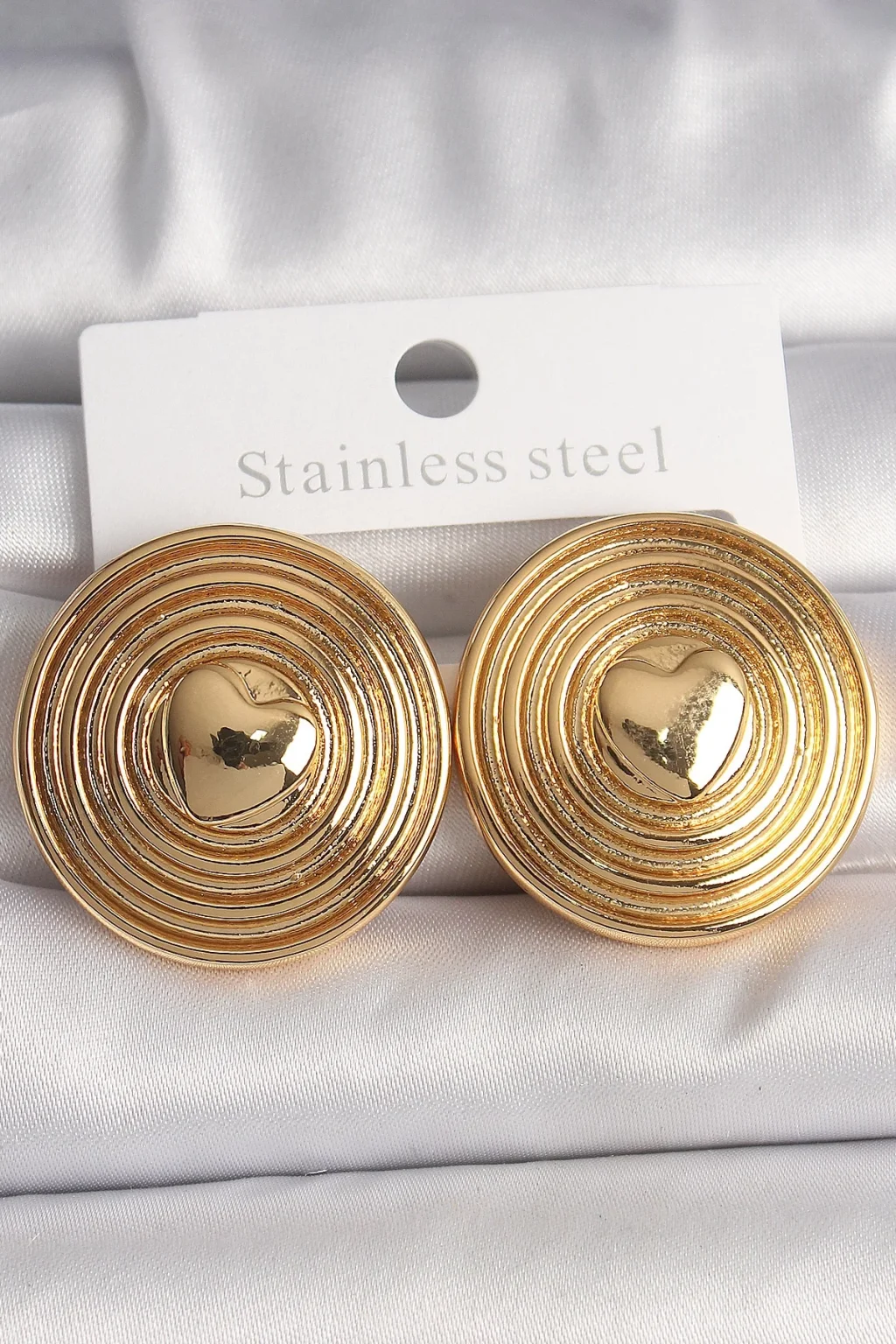 Pirinç Gold Renk Kalp İşlemeli Daire Plaka Model Kadın Küpe