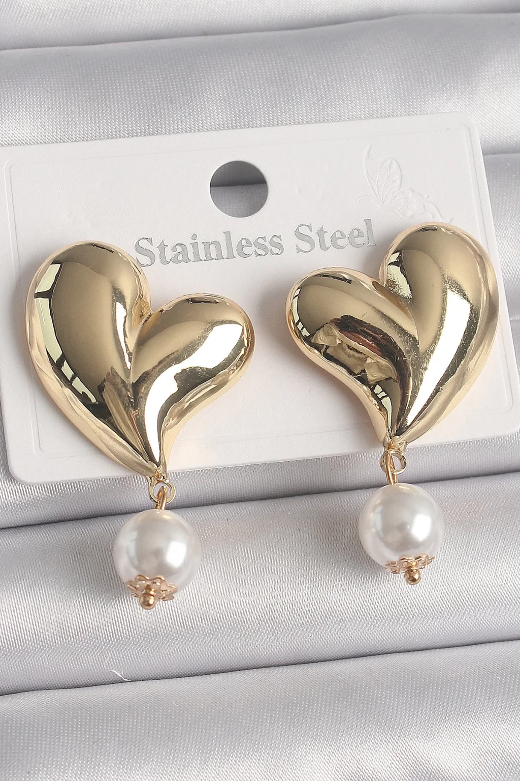 Pirinç Gold Renk Kalp Model Sallantı İnci Detay Kadın Küpe