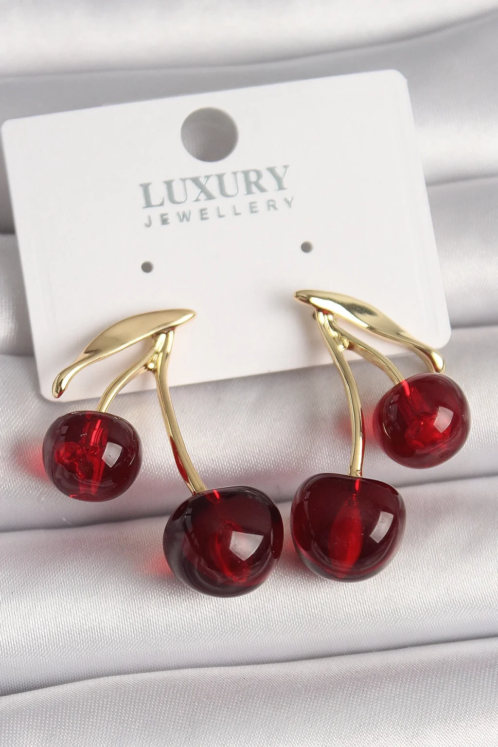 Pirinç Gold Renk Kırmızı Kiraz Model Kadın Küpe