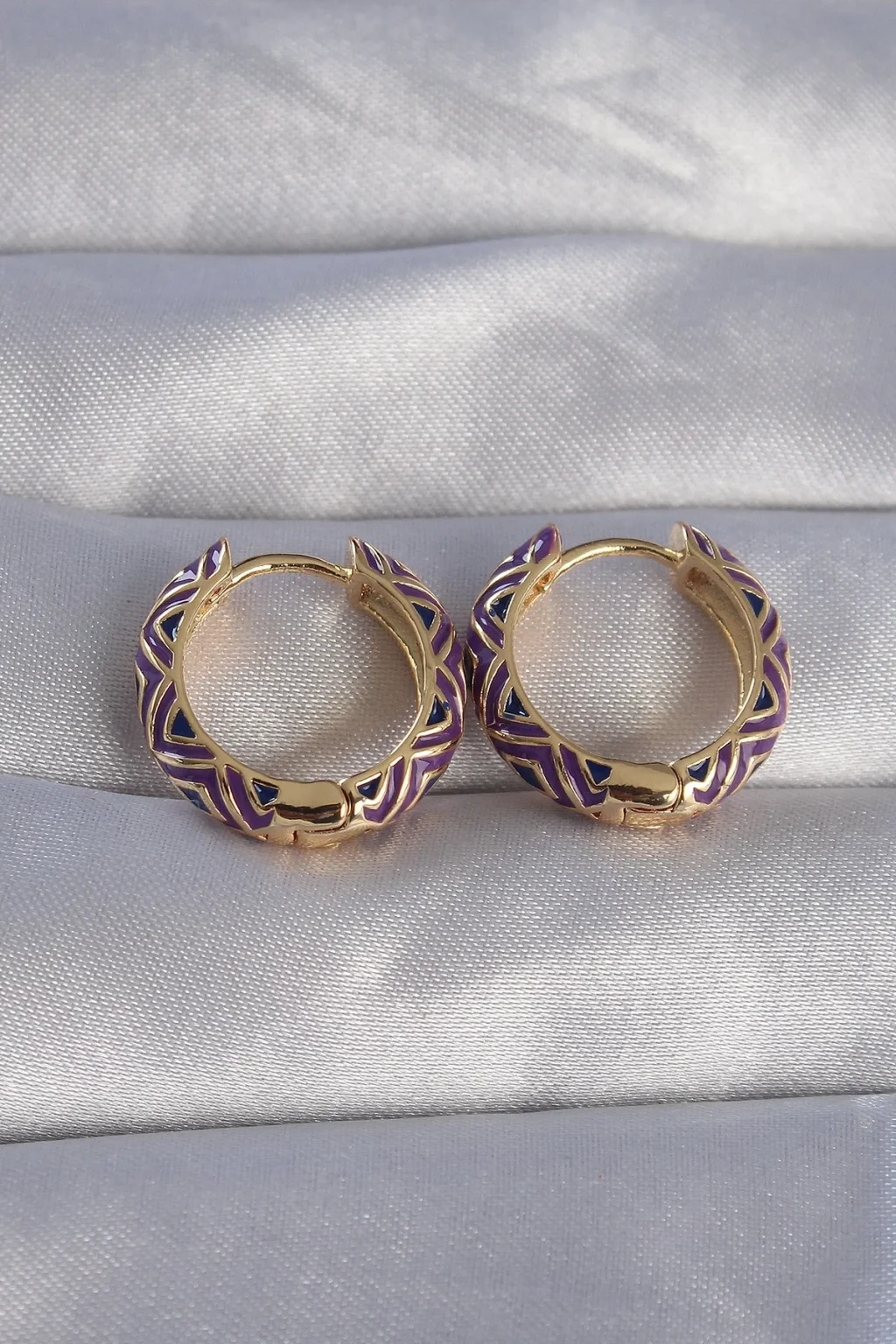Pirinç Gold Renk Mor Etnik Desenli Halka Küpe
