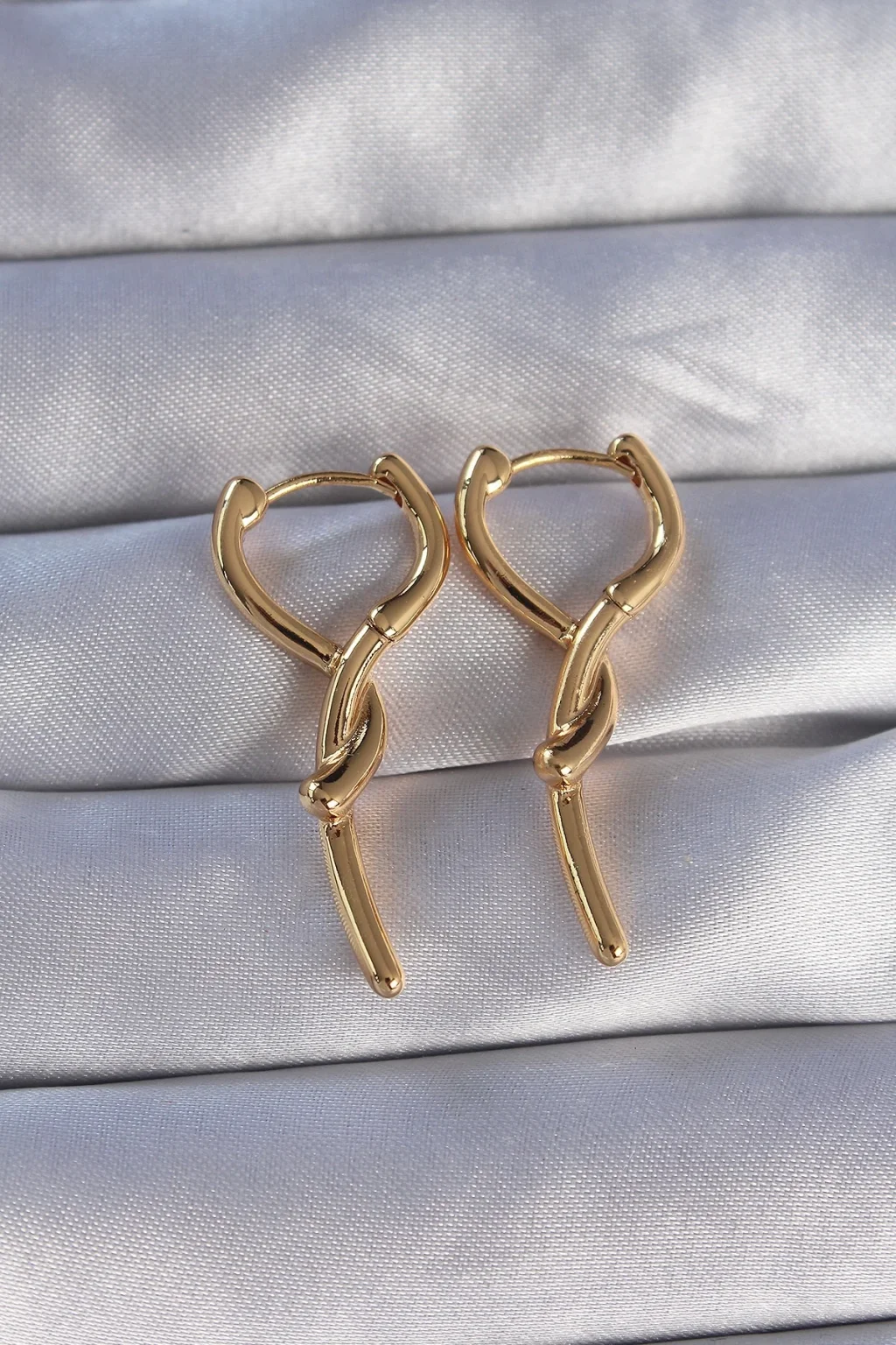 Pirinç Gold Renk Sarmal Çubuk Tasarımlı Uzun Küpe