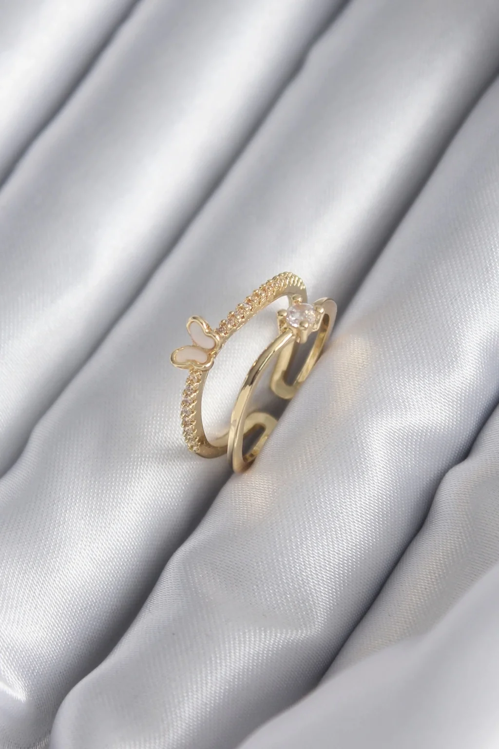 Pirinç Gold Renk Zirkon Taş Detay Kelebek Model Kadın Yüzük