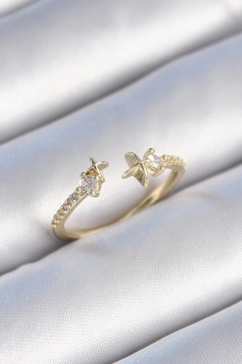 Pirinç Gold Renk Zirkon Taş Detay Yıldız Model Kadın Yüzük