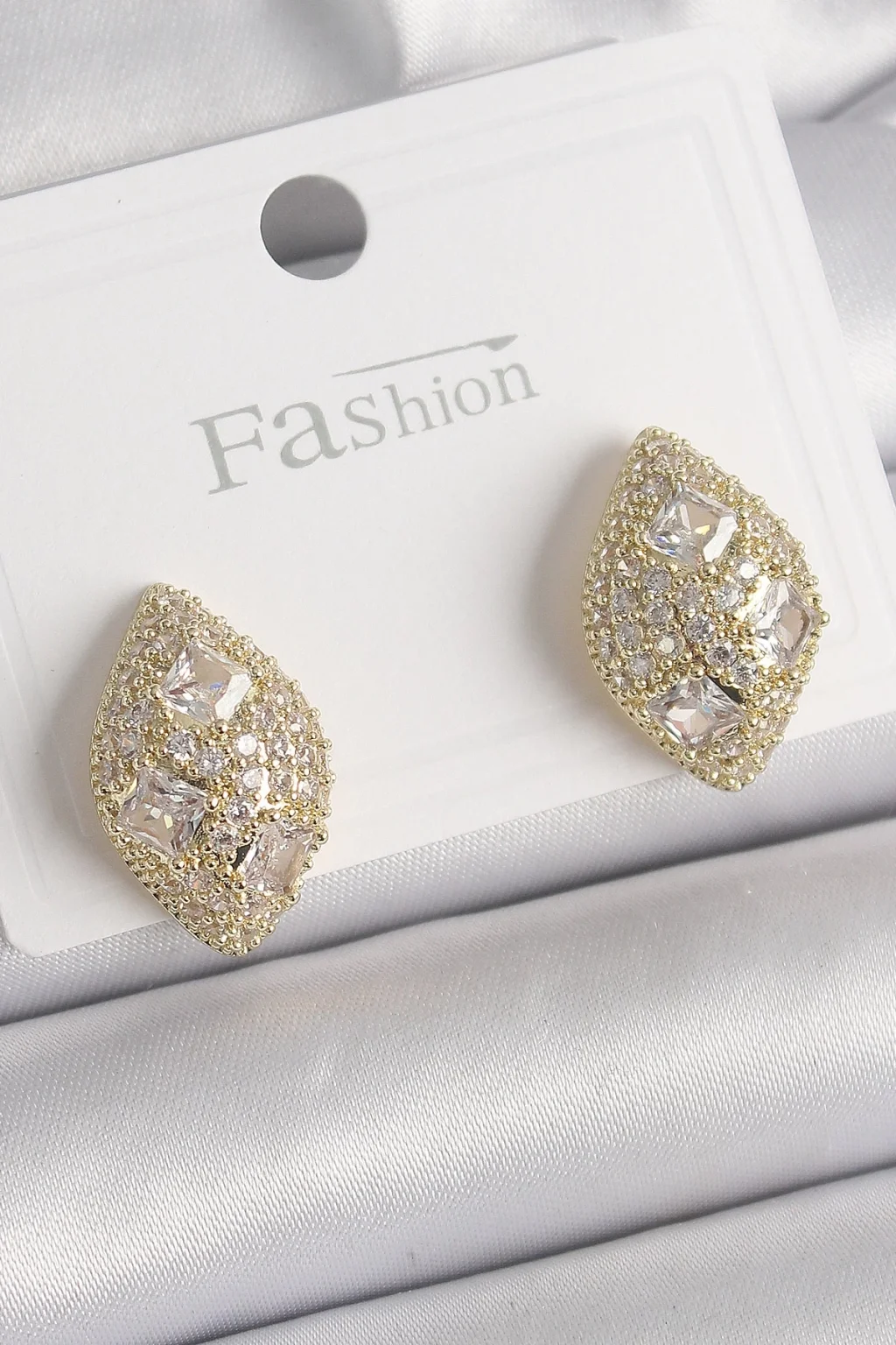 Pirinç Gold Renk Zirkon Taş İşlemeli Damla Model Kadın Küpe