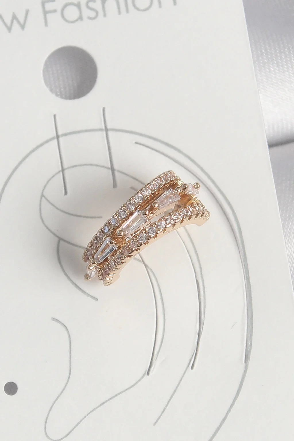 Pirinç Gold Renk Zirkon Taşlı 3'Lü Sıralı Model Kadın Kıkırdak Küpe