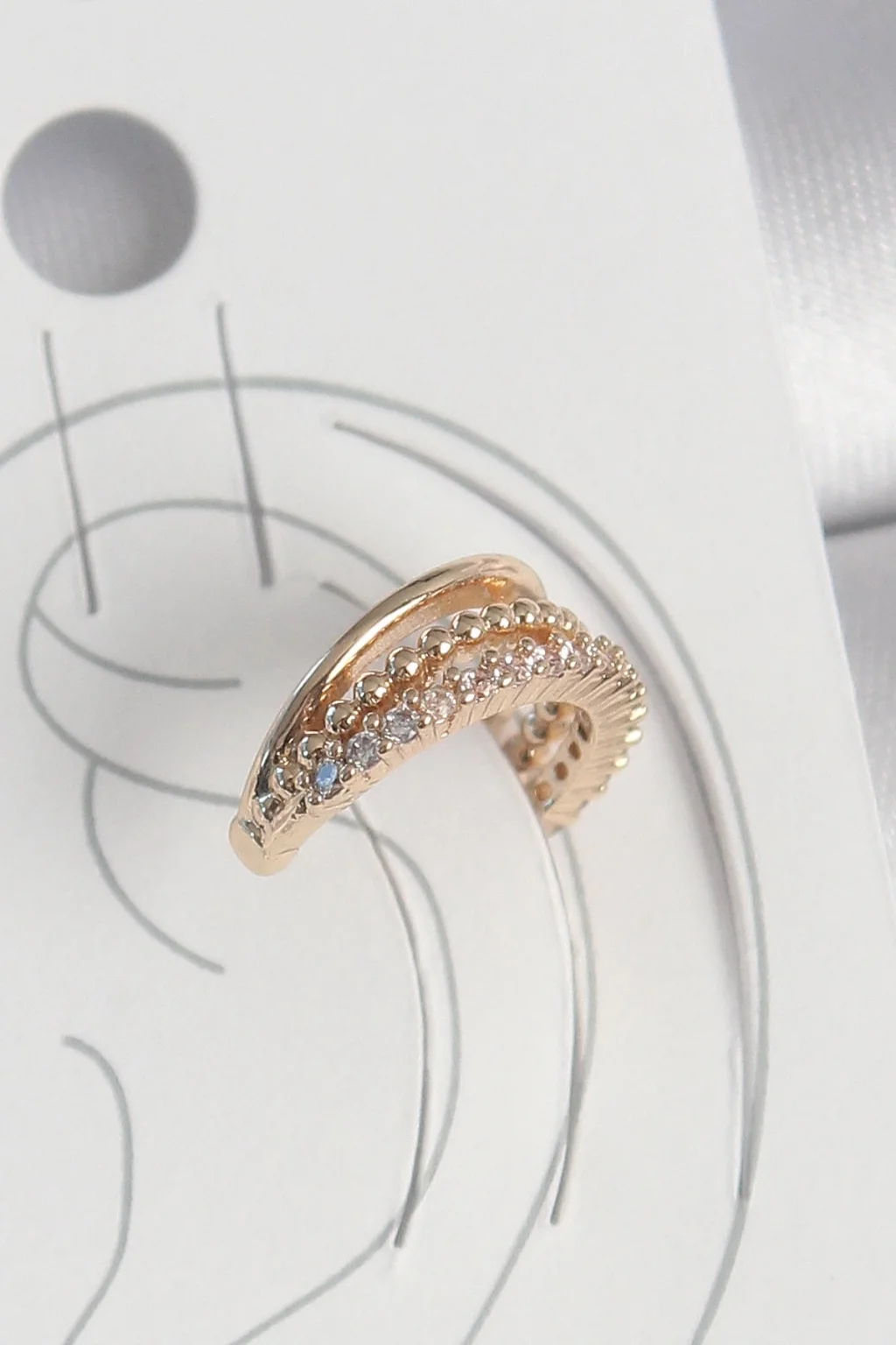 Pirinç Gold Renk Zirkon Taşlı 3'Lü Sıralı Model Kadın Kıkırdak Küpe