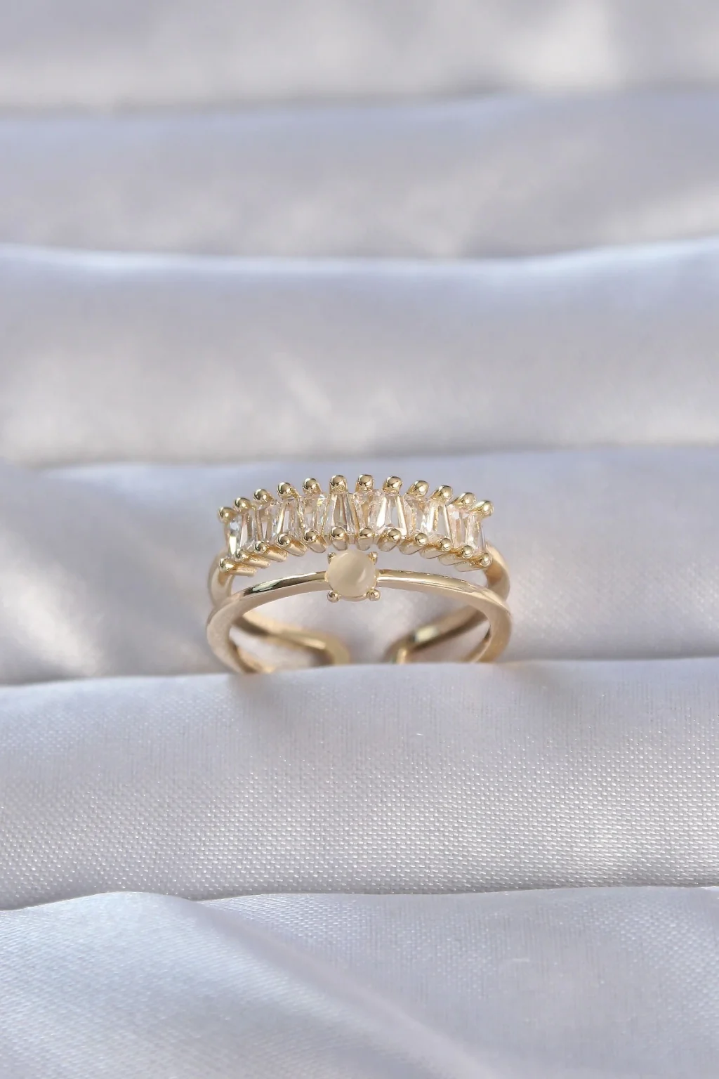 Pirinç Gold Renk Zirkon Taşlı Baget Su Yolu Model Ayarlanabilir Yüzük